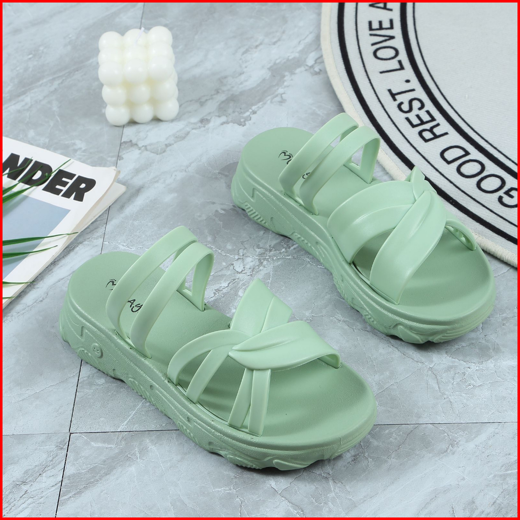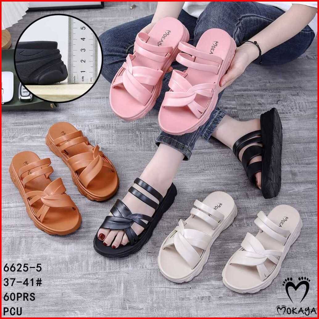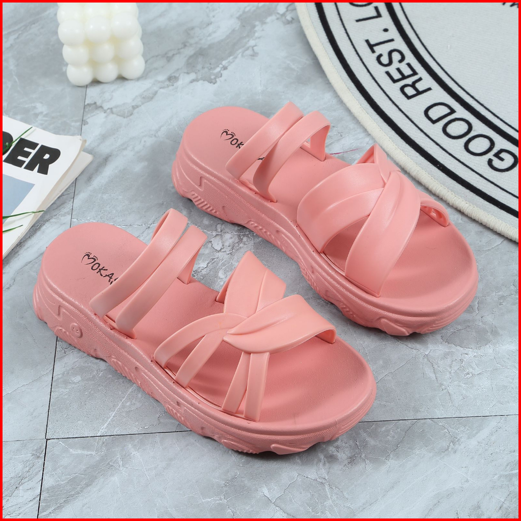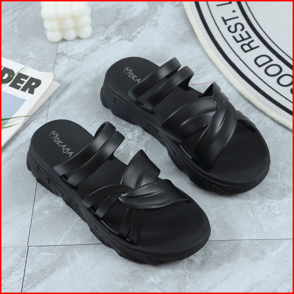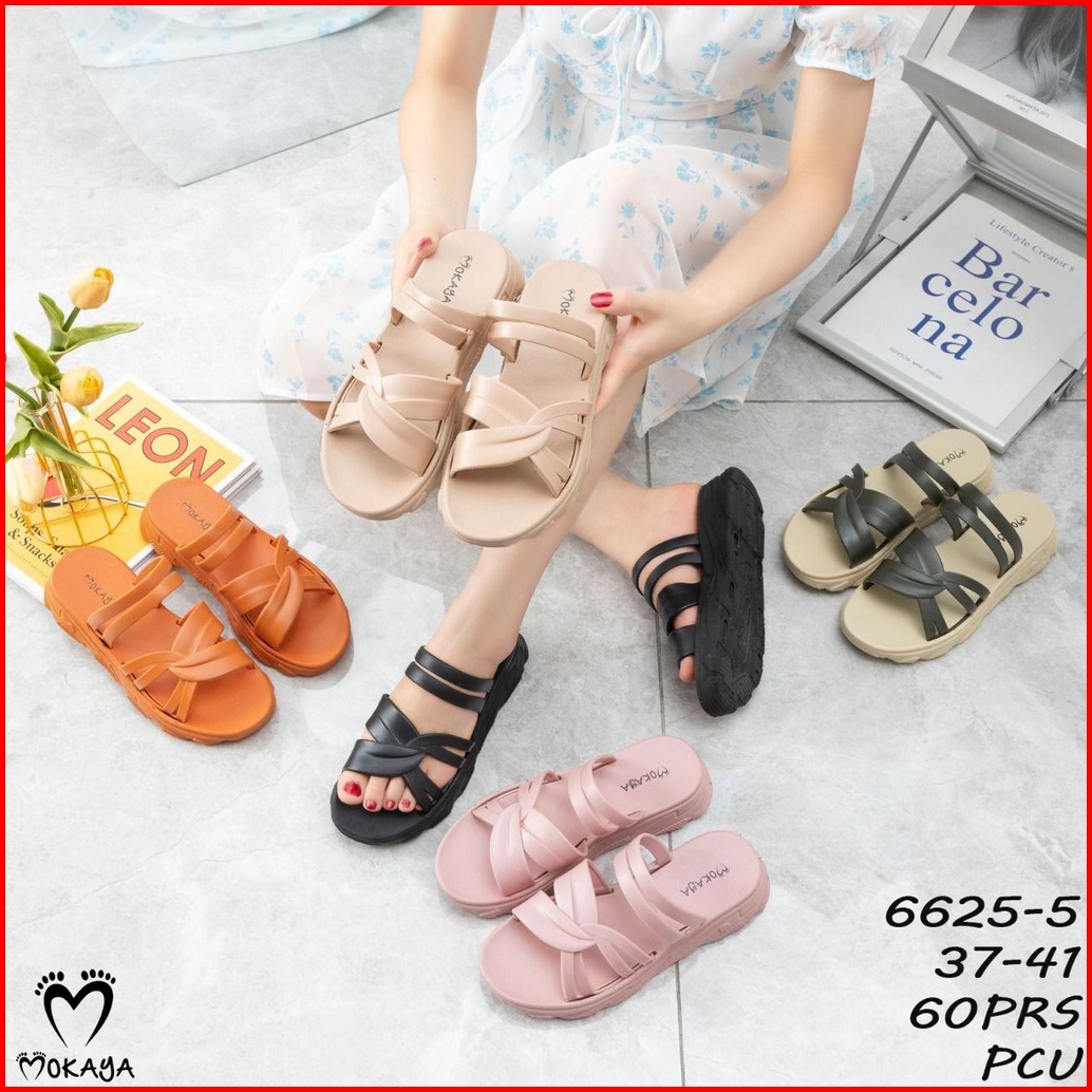 Sandal Slop Jelly Birken Korea Wanita Ban Ikat Silang Tali 2 Sol Tebal Empuk Keren Cantik Import Mokaya Size 37-41 6625