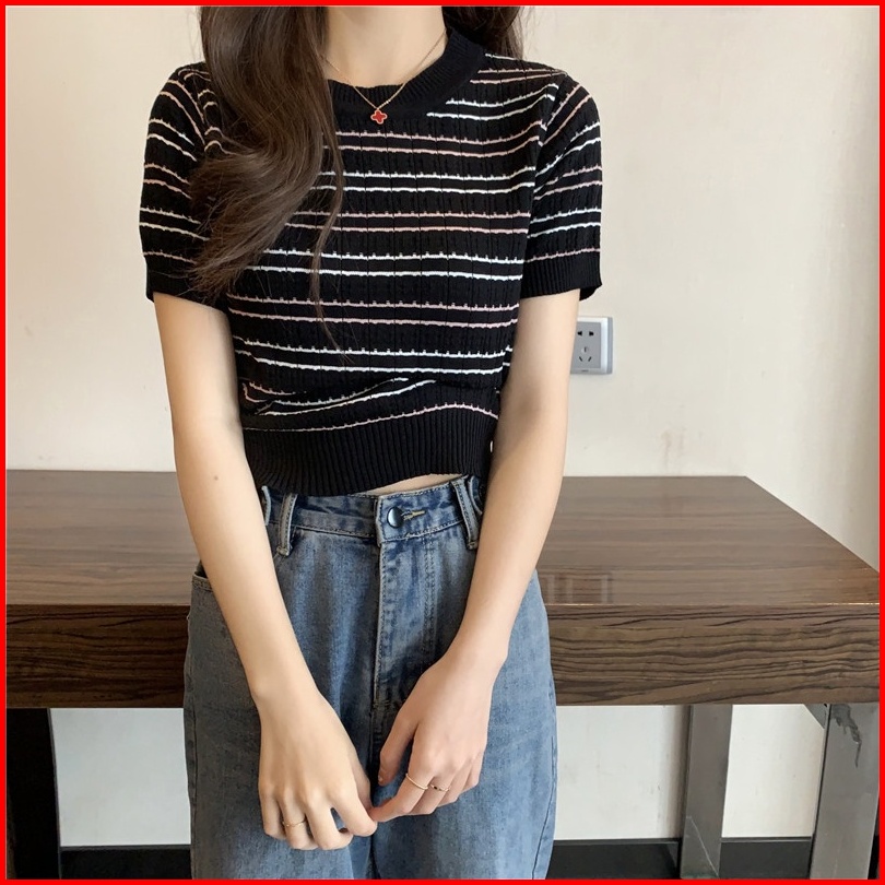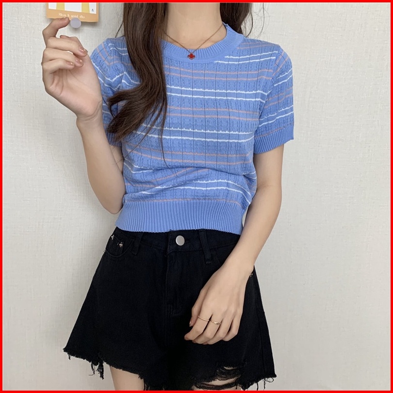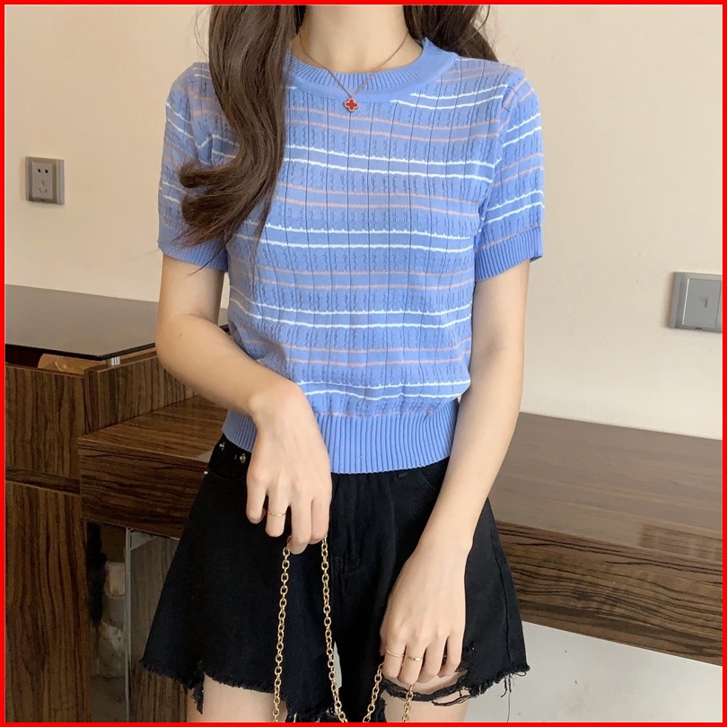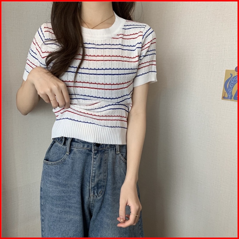 Kaos Rajut Lengan Pendek Wanita Knit T-shirt Baju Atasan Putih Korean Style