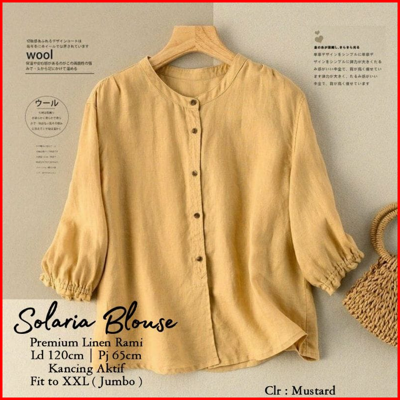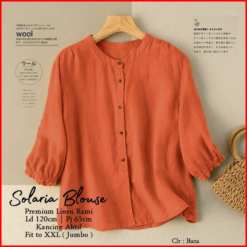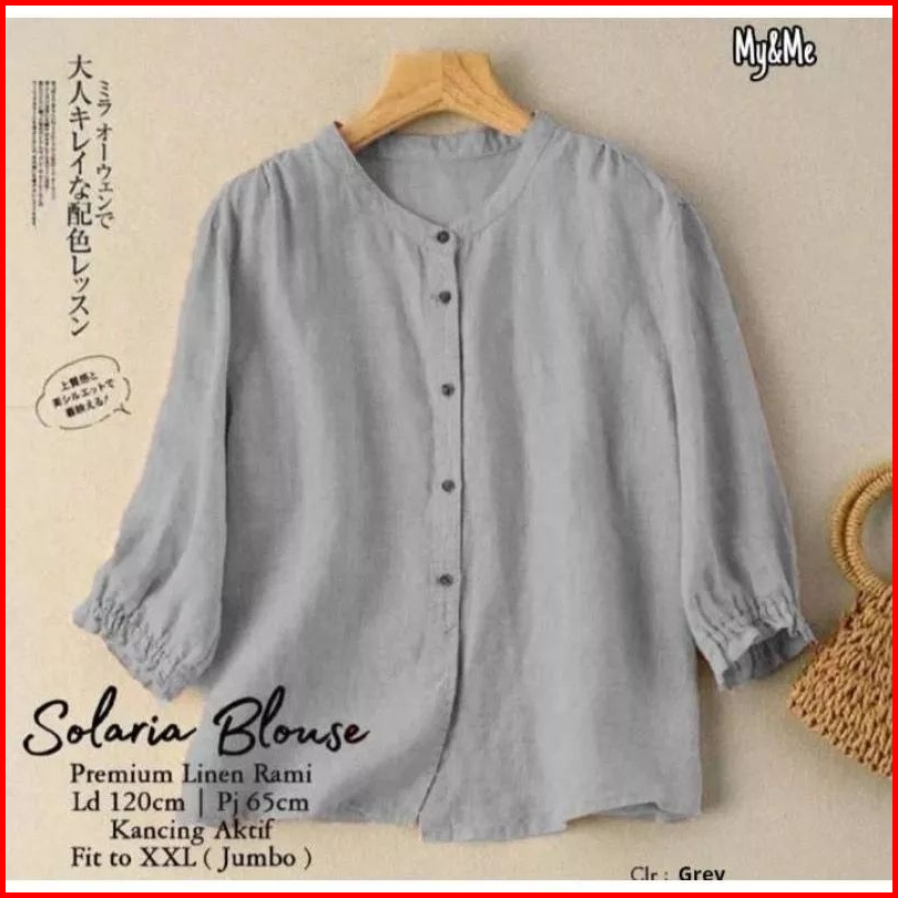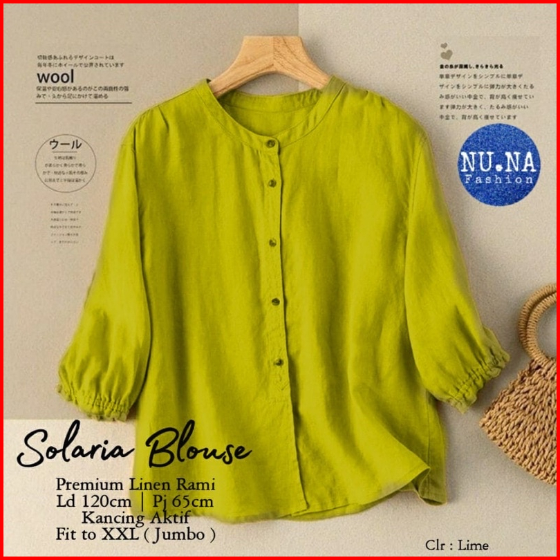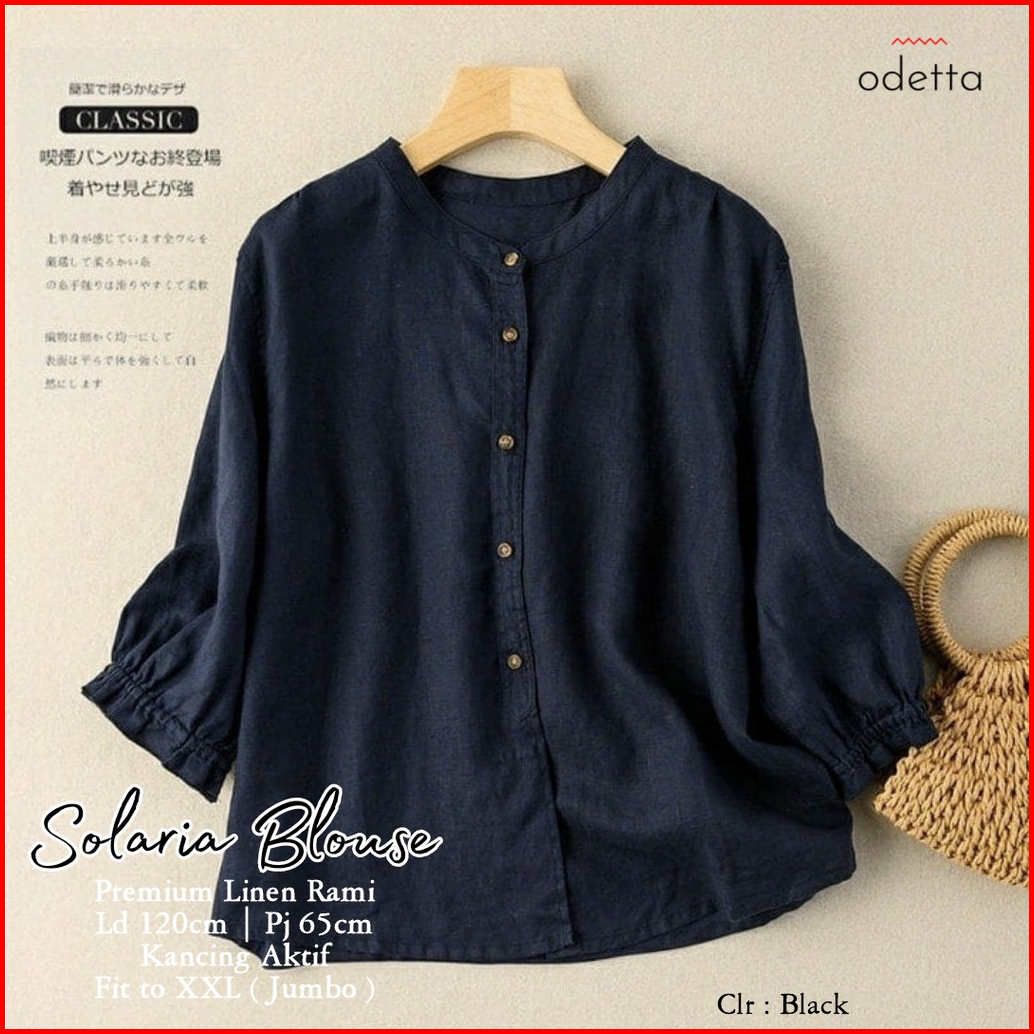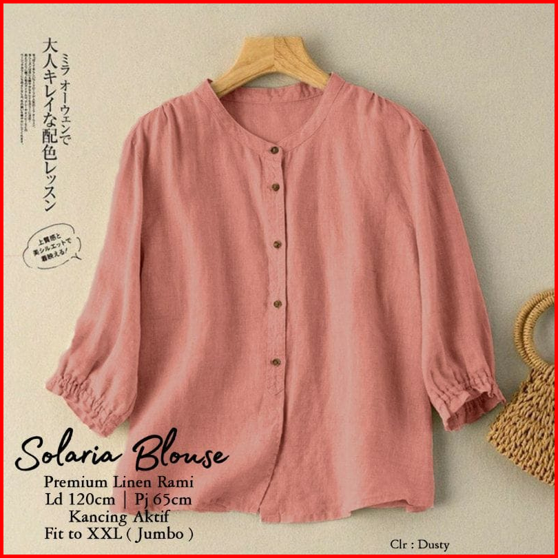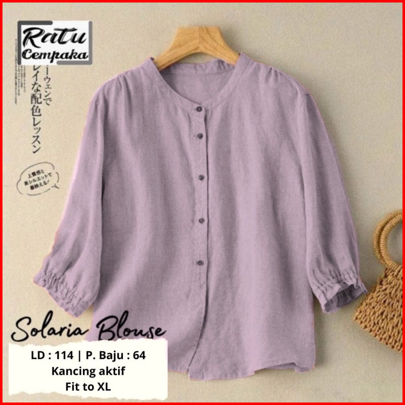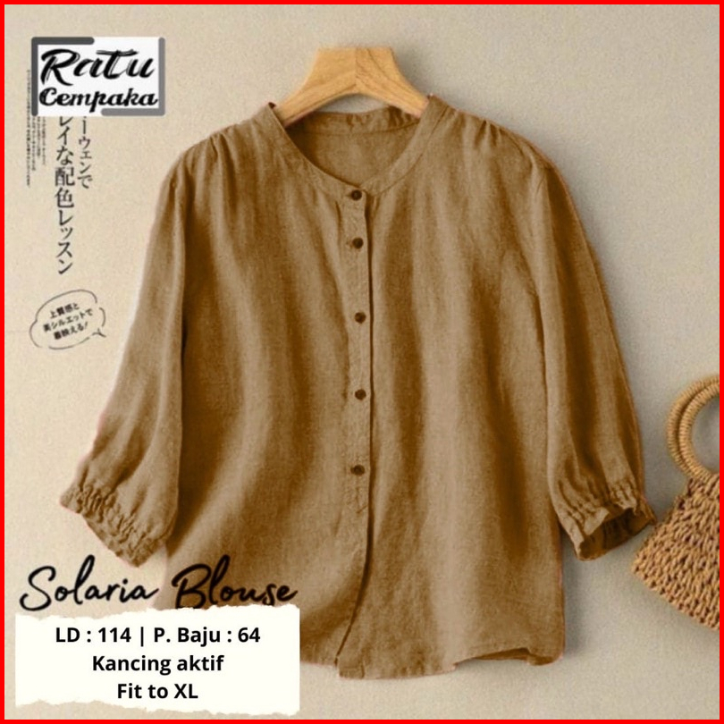 Solaria Blouse Polos Wanita Korea Linen Kerah Shanghai Lengan 3 4 Baju Atasan Kemeja Wanita Jumbo Kekinian