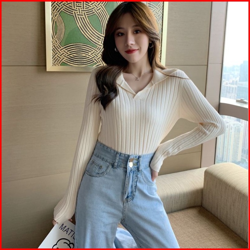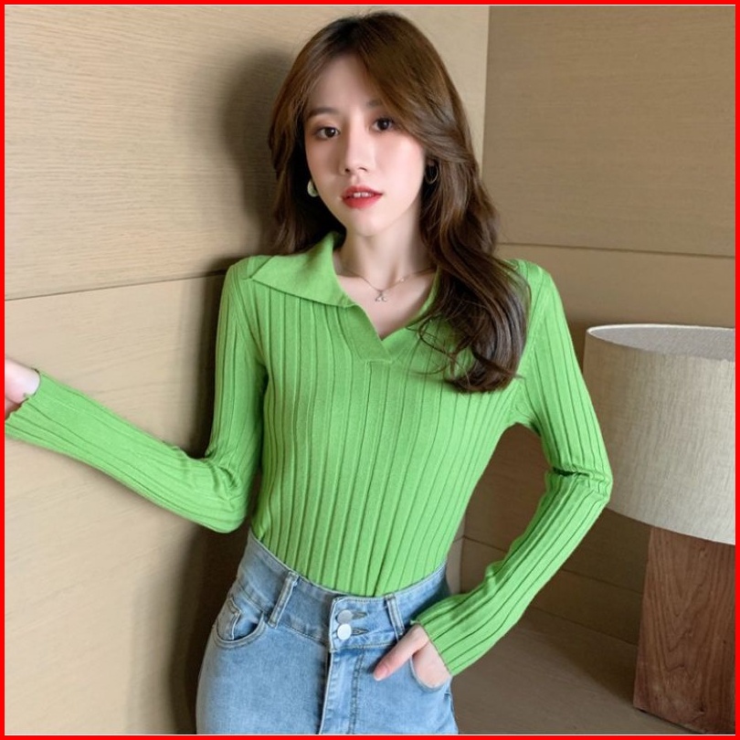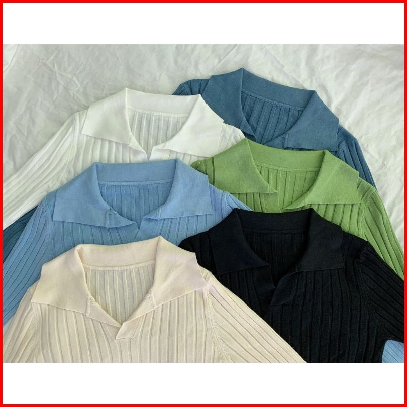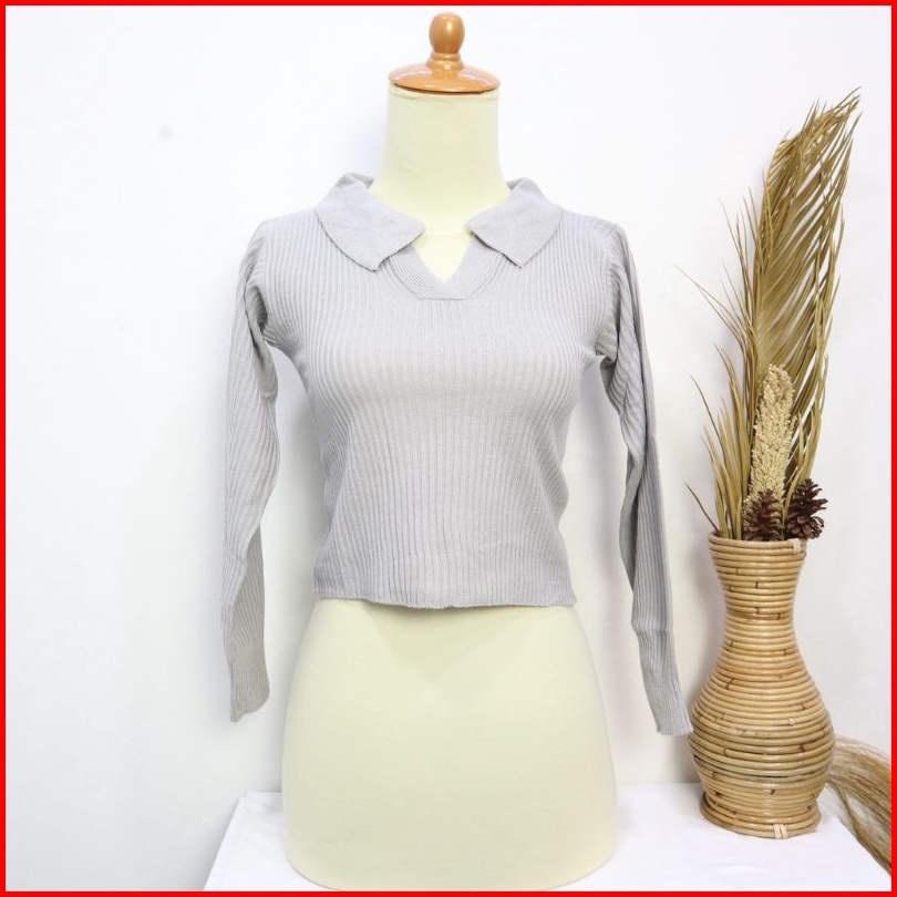 Alena Long Slevee Atasa Rajut Wanita Kerah Polo