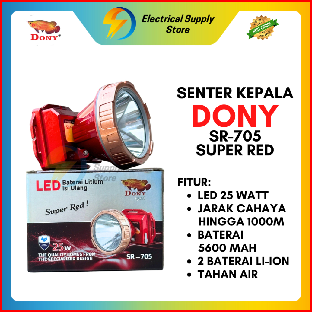 Senter Kepala Dony Sr-705 Super Red Q-led 25w Super Terang 3 Mode Putih Kuning Waterproof