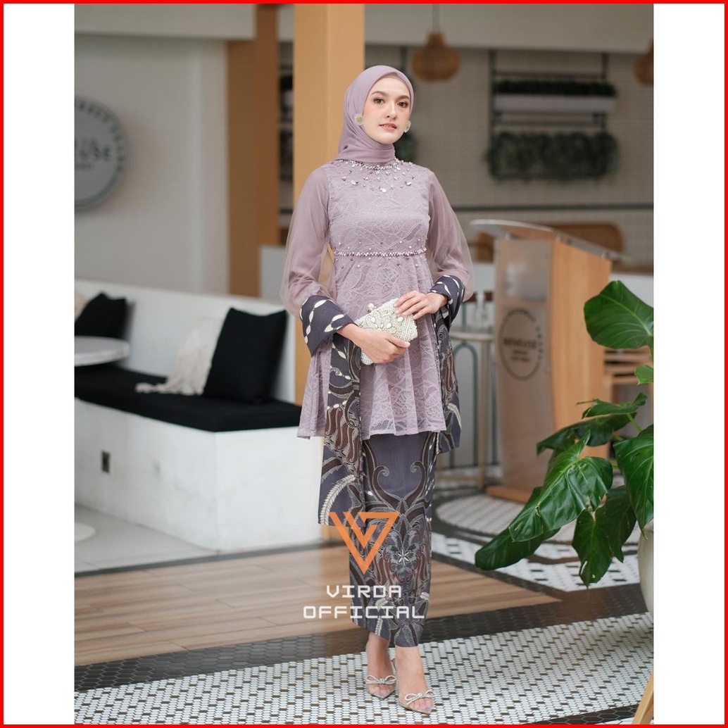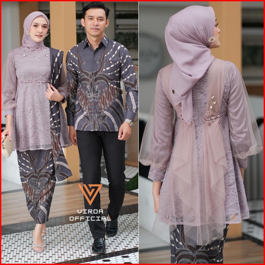 Set Couple Kebaya Modern Nadine Warna Mauve Wisuda Tunangan Lamaran Brukat Kondangan Akita Widbatik