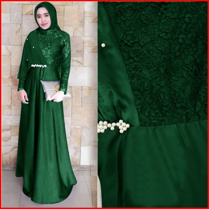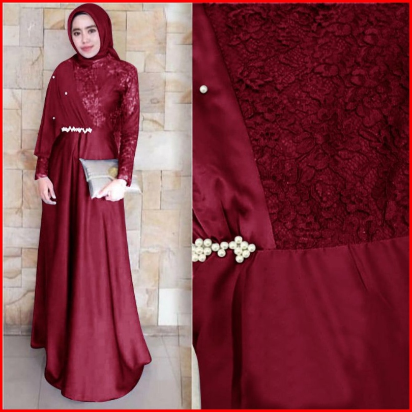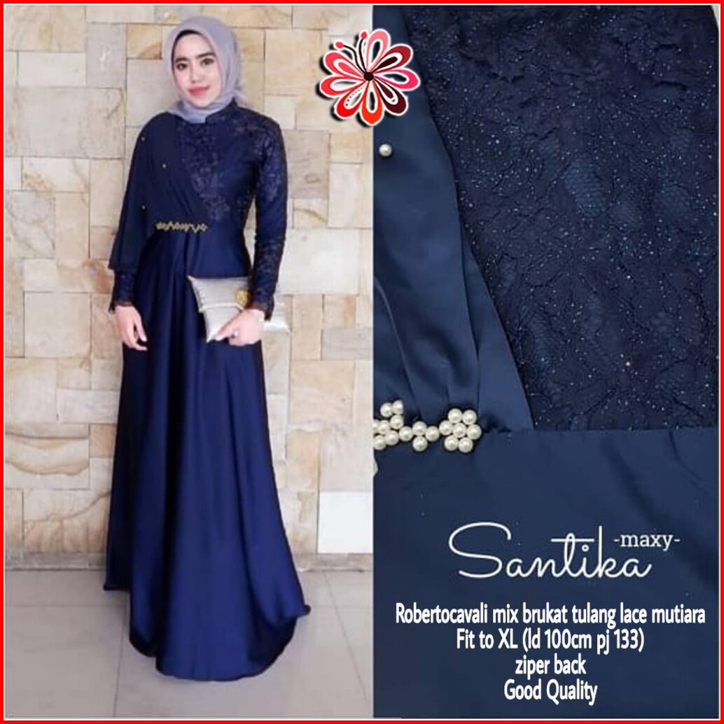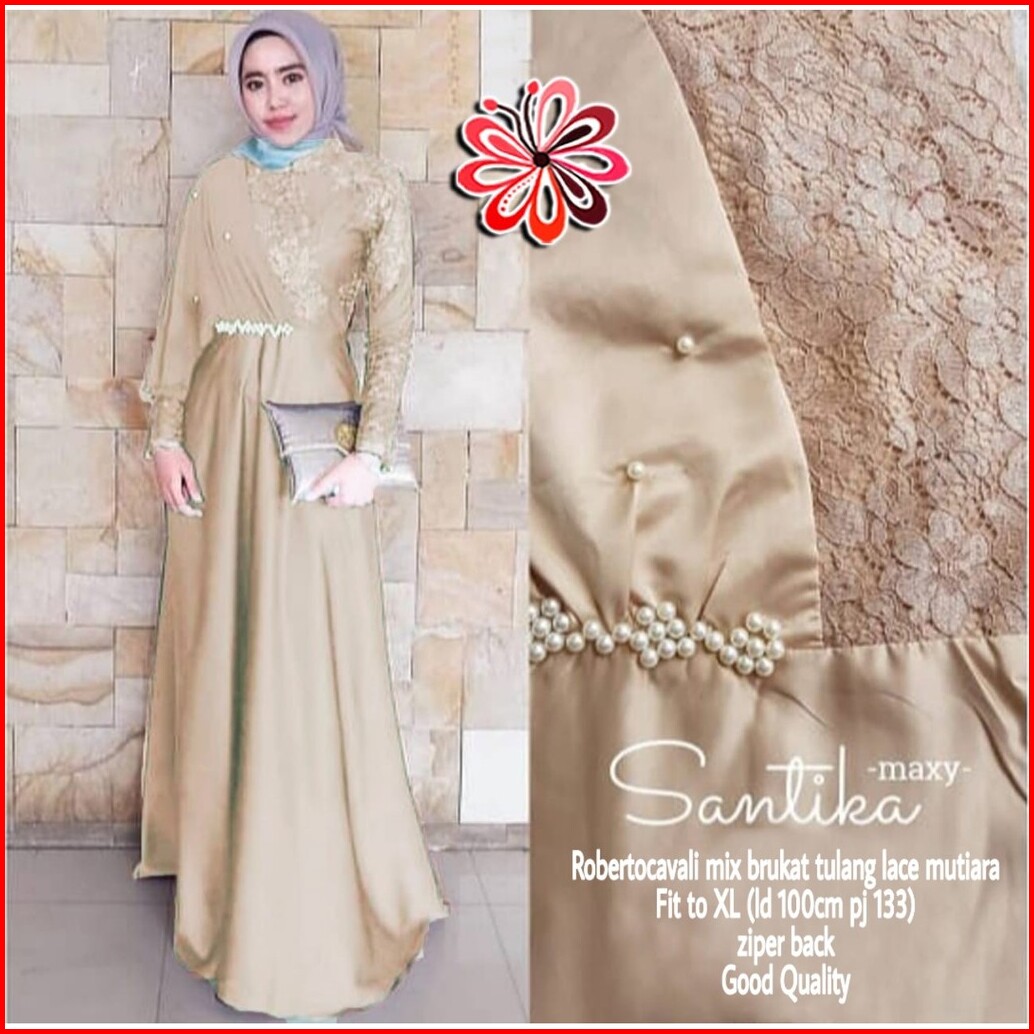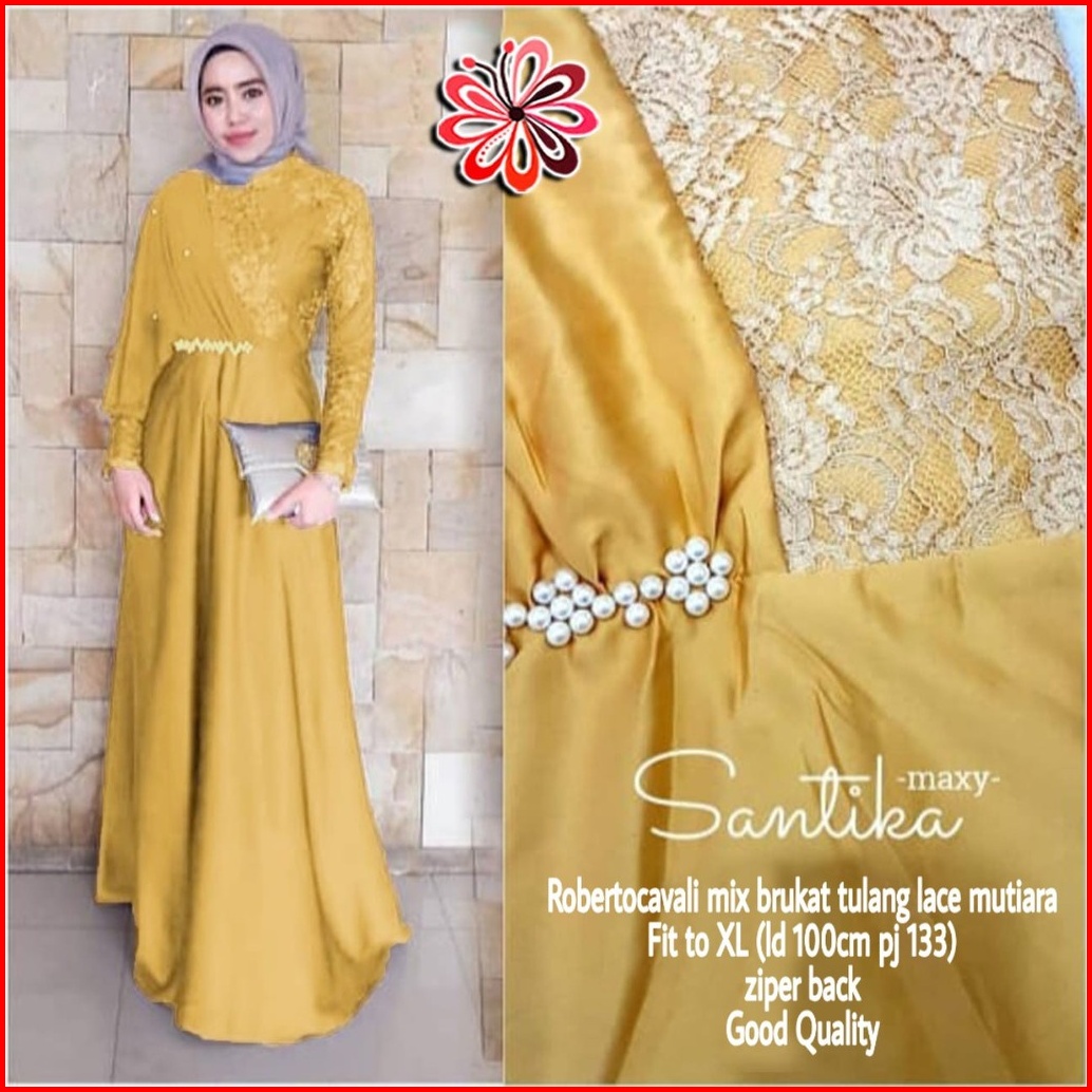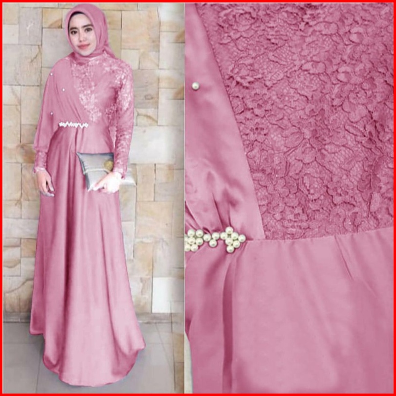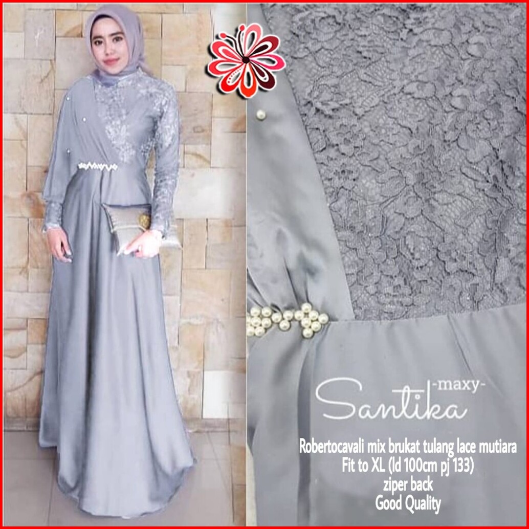 Maxi Santika Mix Brokat Mf Dress Wanita Muslim Pakaian Pesta Wanita
