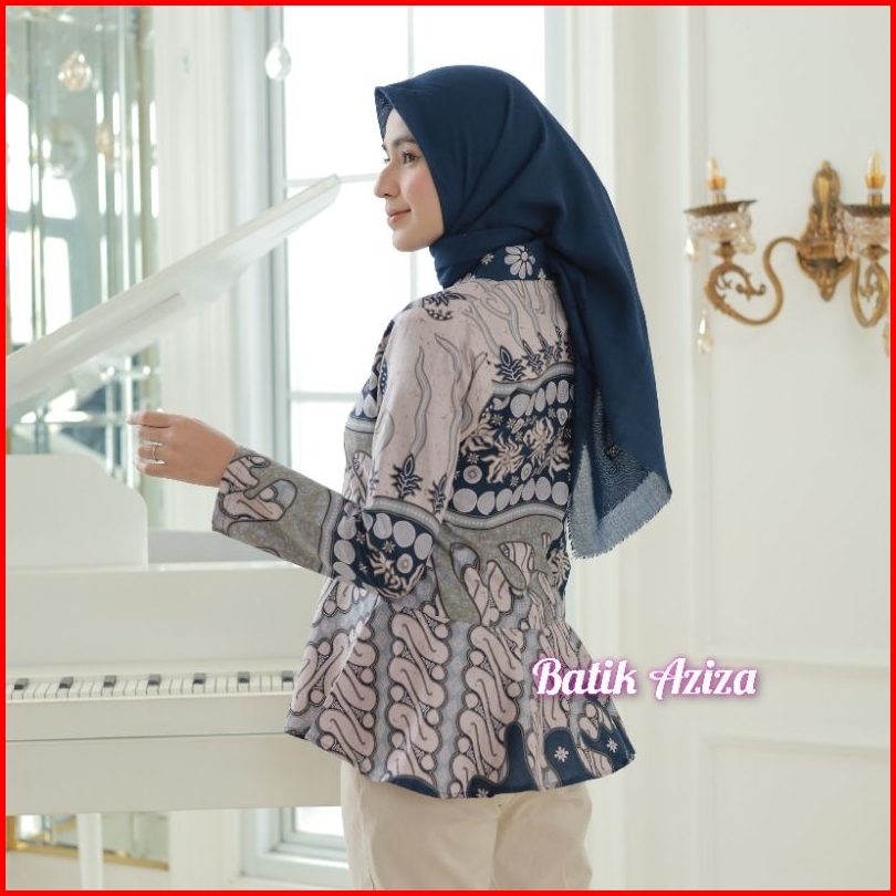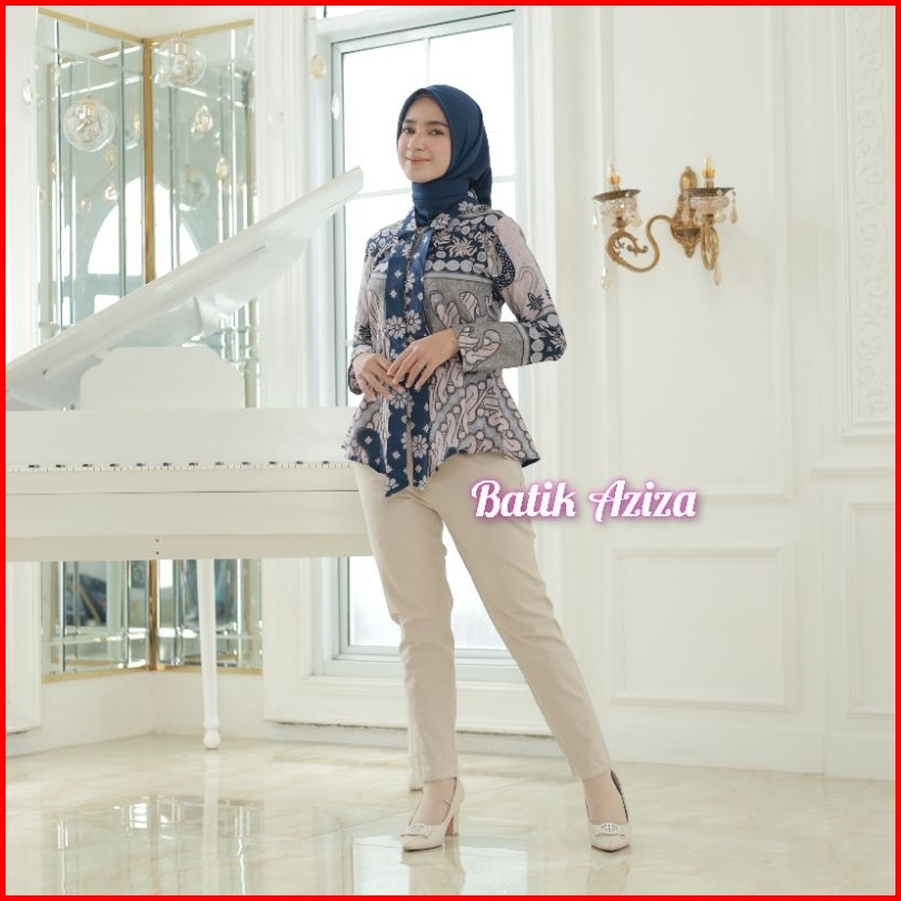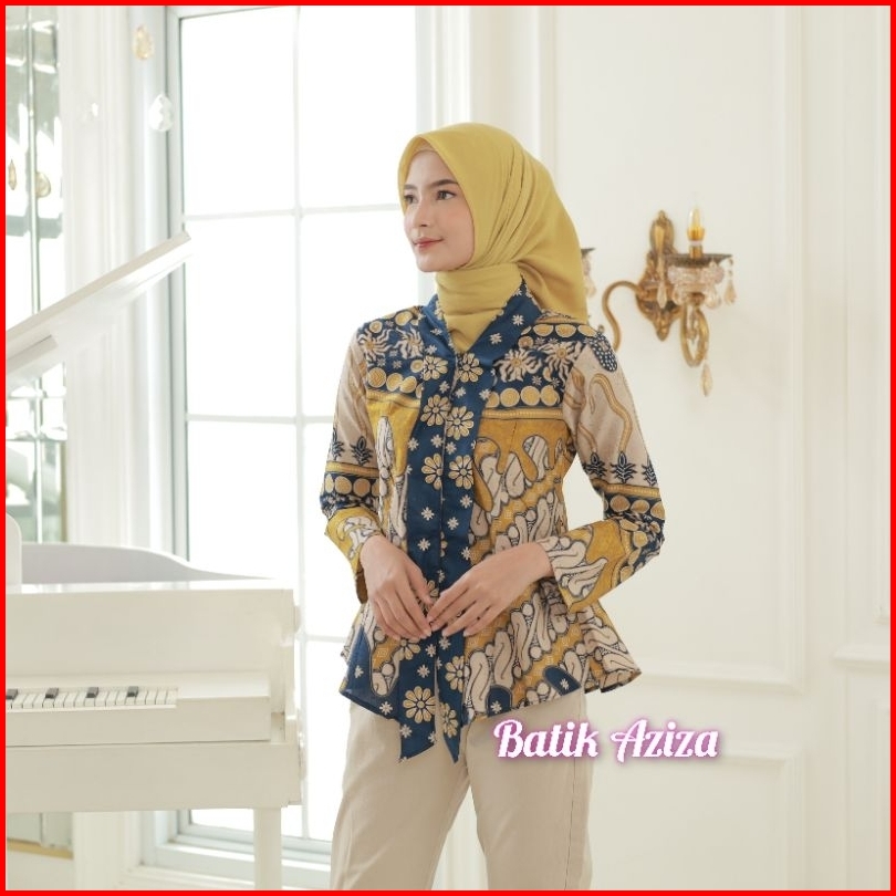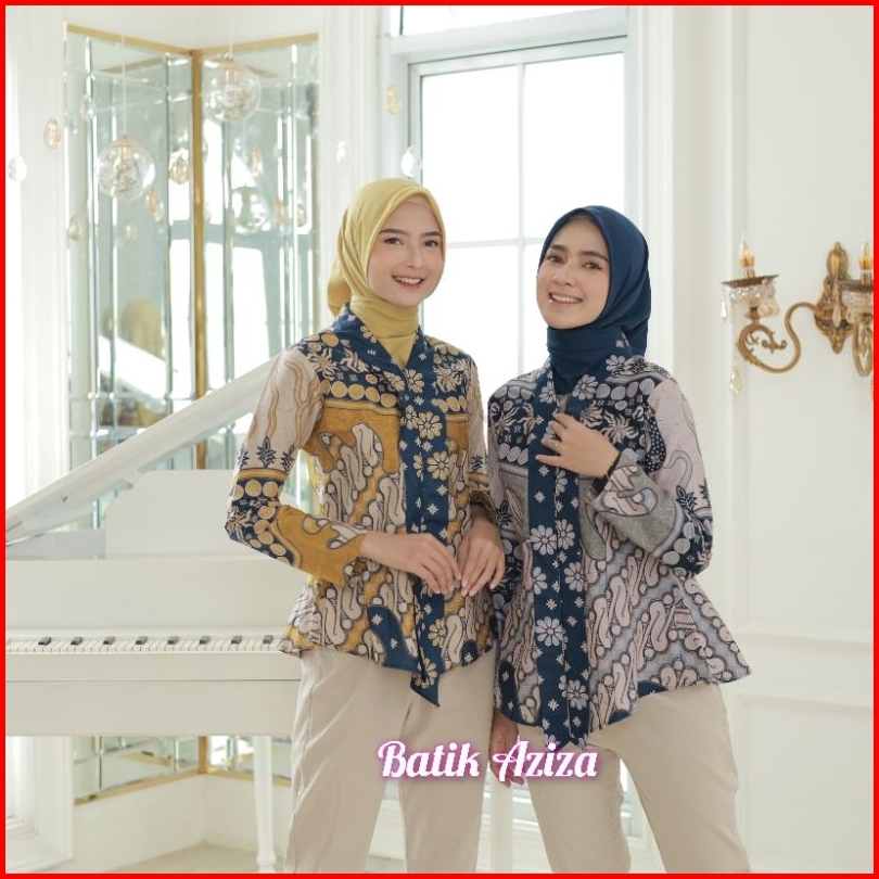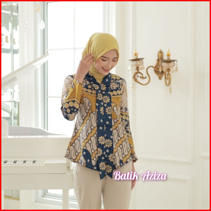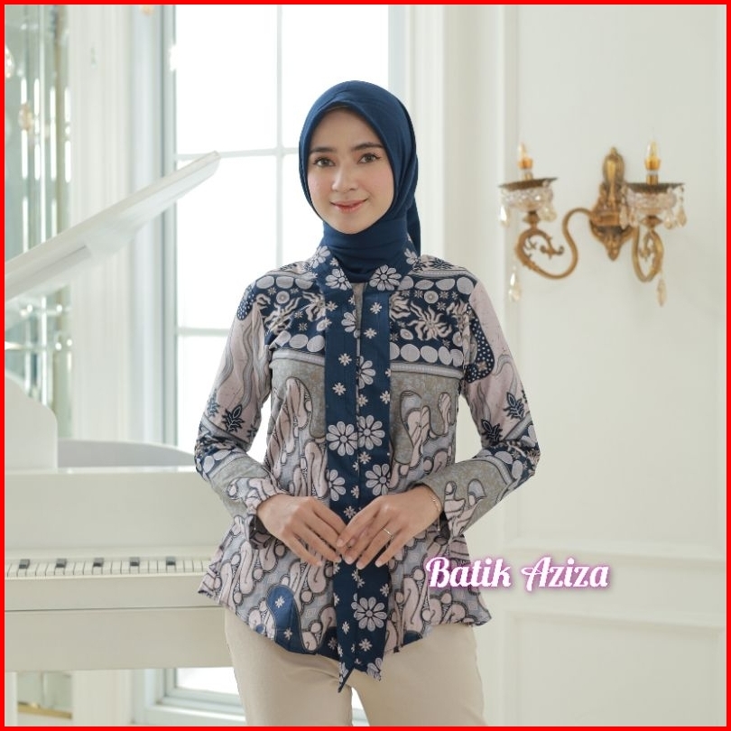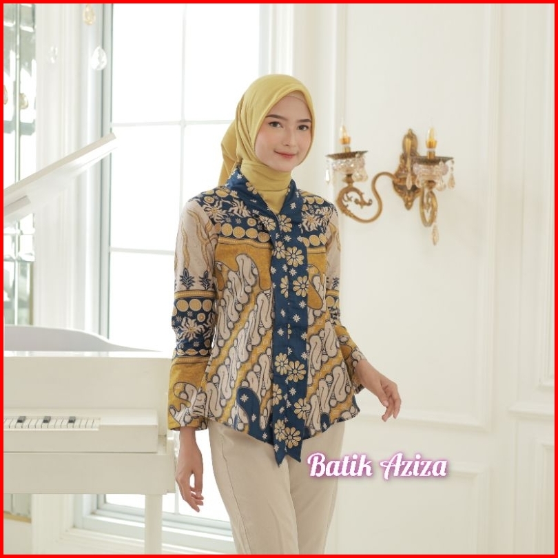 Batik Wanita Kutubaru Modern Lengan Panjang Kancing Depan Blus Batik Kencana Kain Katun By Batik Aziza