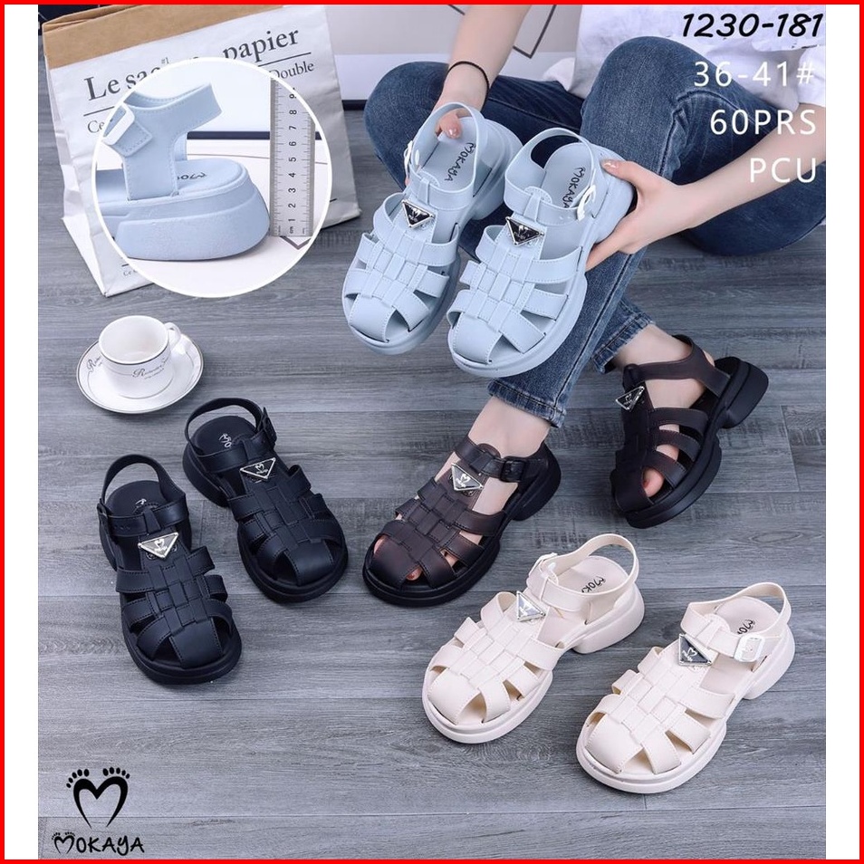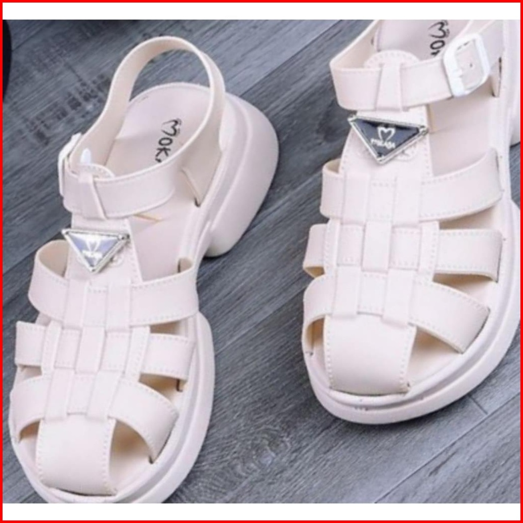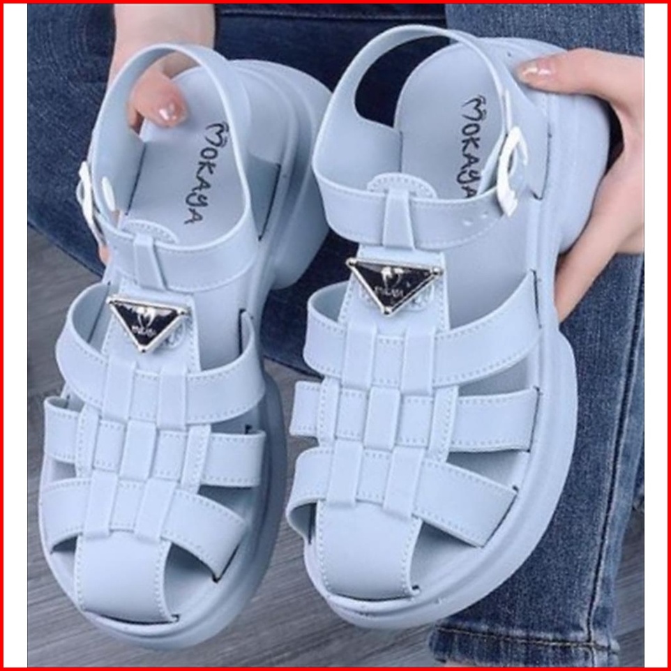 Sandal Gladiator Wanita Jelly Tali Belakang Gesper Putih Mokaya Super Empuk Pretty Trendy Import Mokaya Size 36-41 1230-