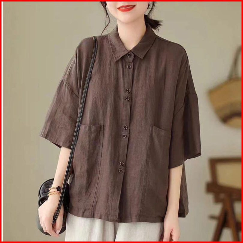 Fuji Top Blouse Atasan Wanita Linen Premium Kemeja Wanita Korean Style