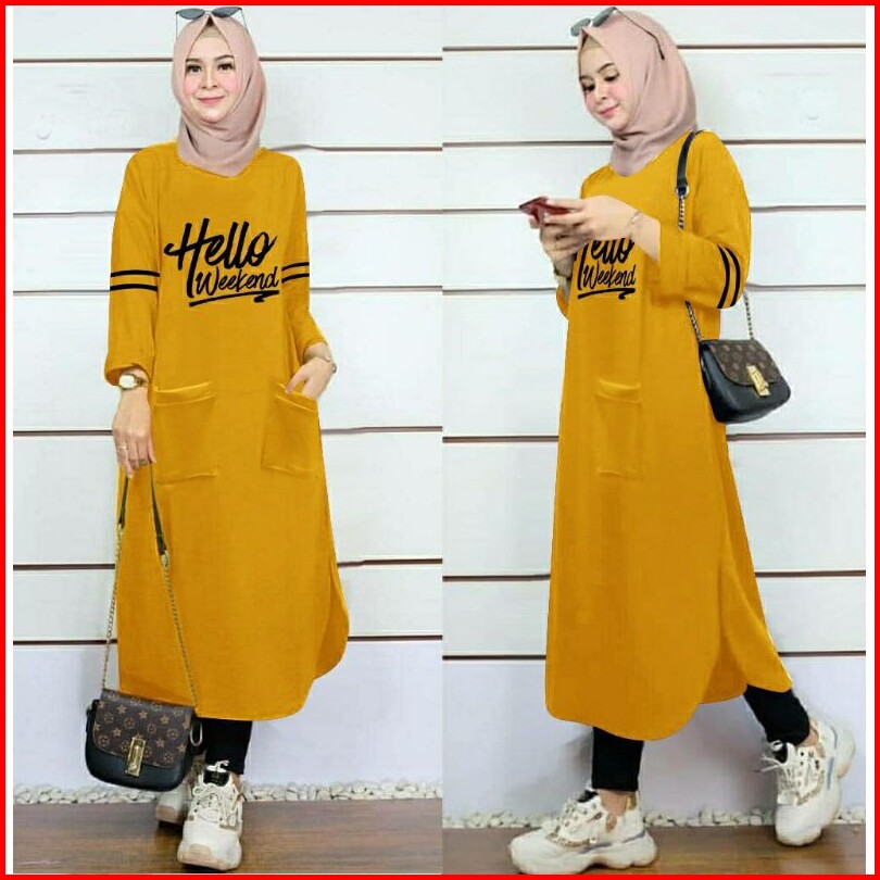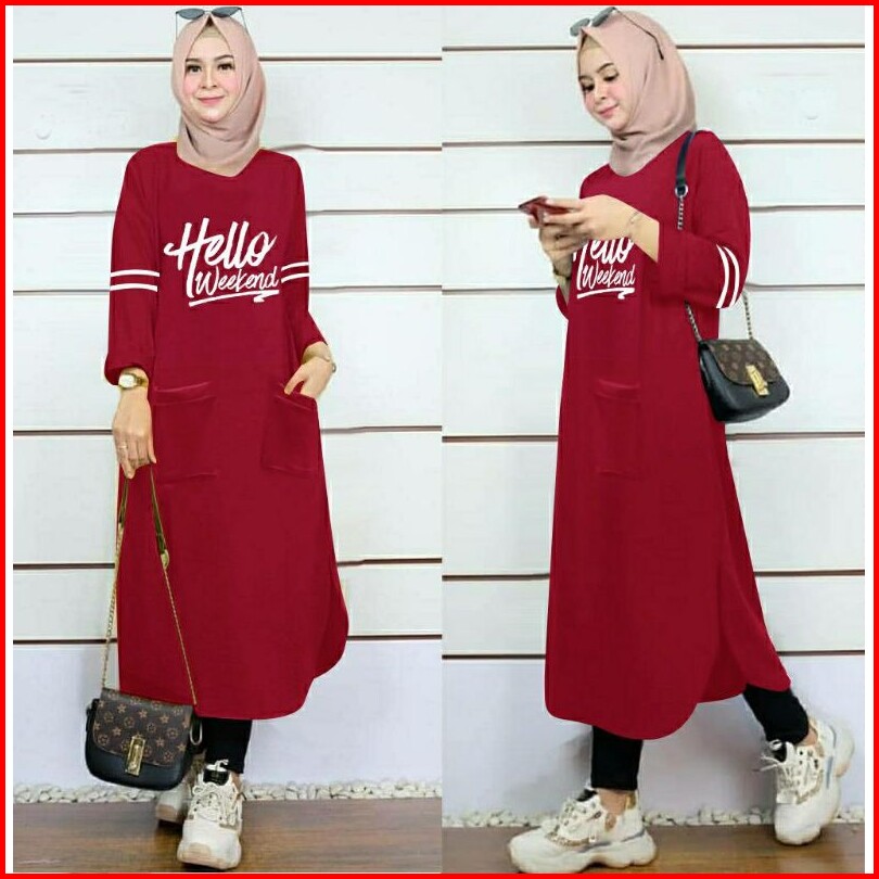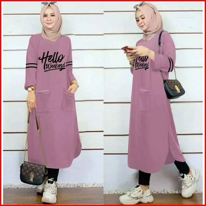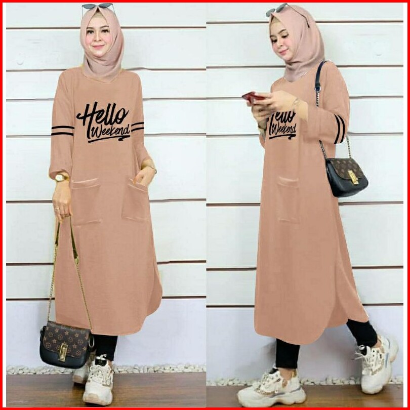 Jf Atasan Tunik Kaos Babyterry Jumbo Wanita Muslimah Terbaru Helo Weekend