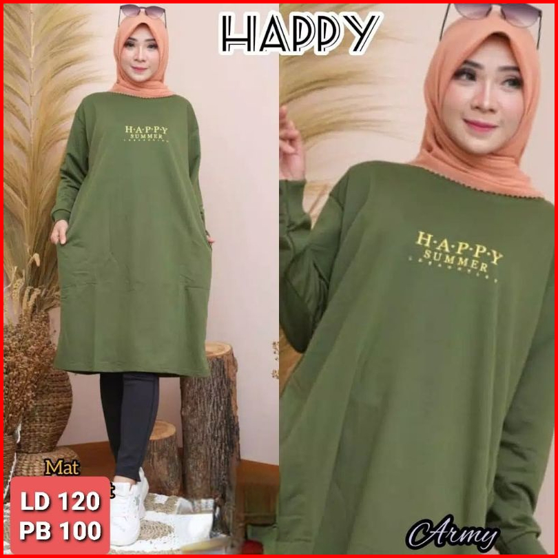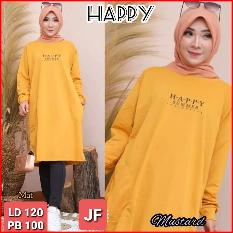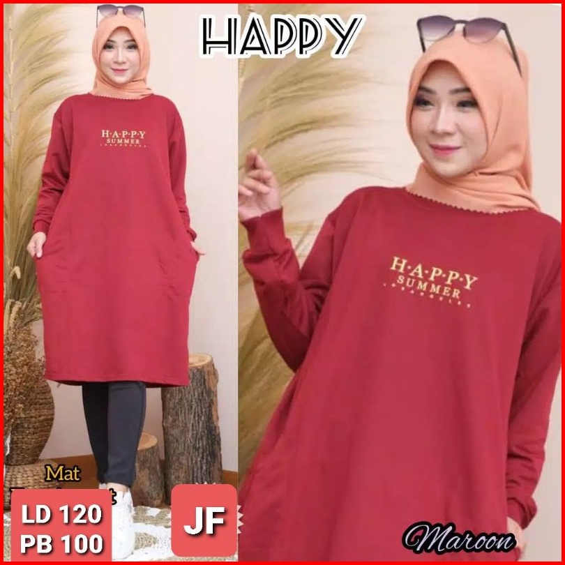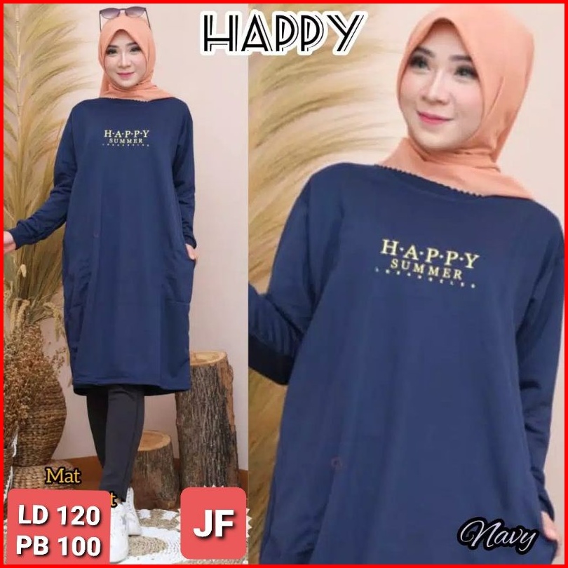 Jf Atasan Tunik Kaos Babyterry Jumbo Xxl Wanita Muslimah Terbaru Happy Ld 120 Pb 100