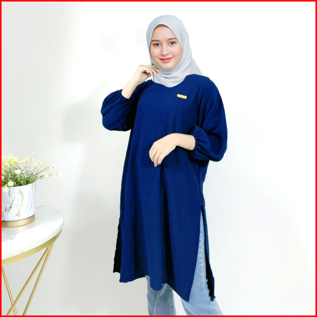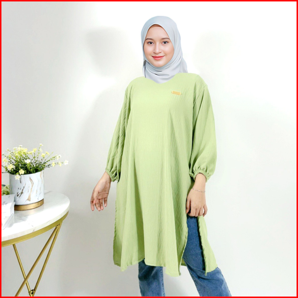 Atasan Tunik Polos Cringkle Premium Wanita 86 Ib35 Montyfashion