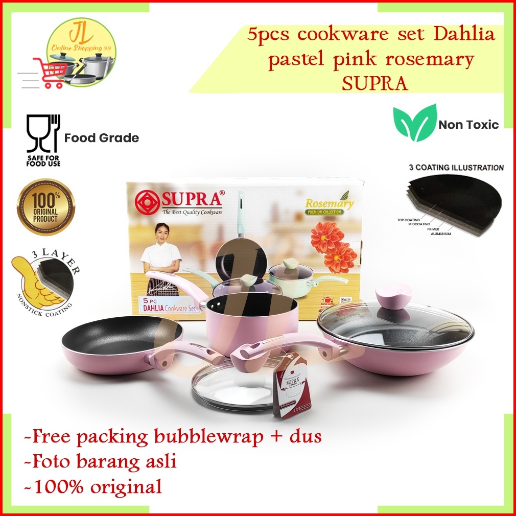 5pcs Cookware Set Supra Pastel Pink Renatta Dahlia Panci Set Supra