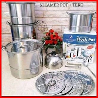 Panci Steamer Stock Pot Panci Kukus 4set Panci Dandang Set