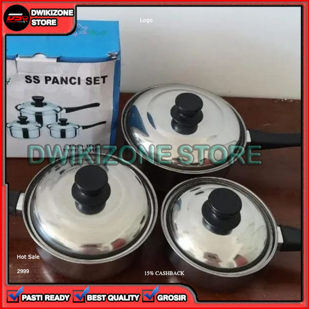 Grosir Panci Set 3 In 1 Stainless Steel Pot Anti Lengket Frypan Milk Pan Panci Susu Set