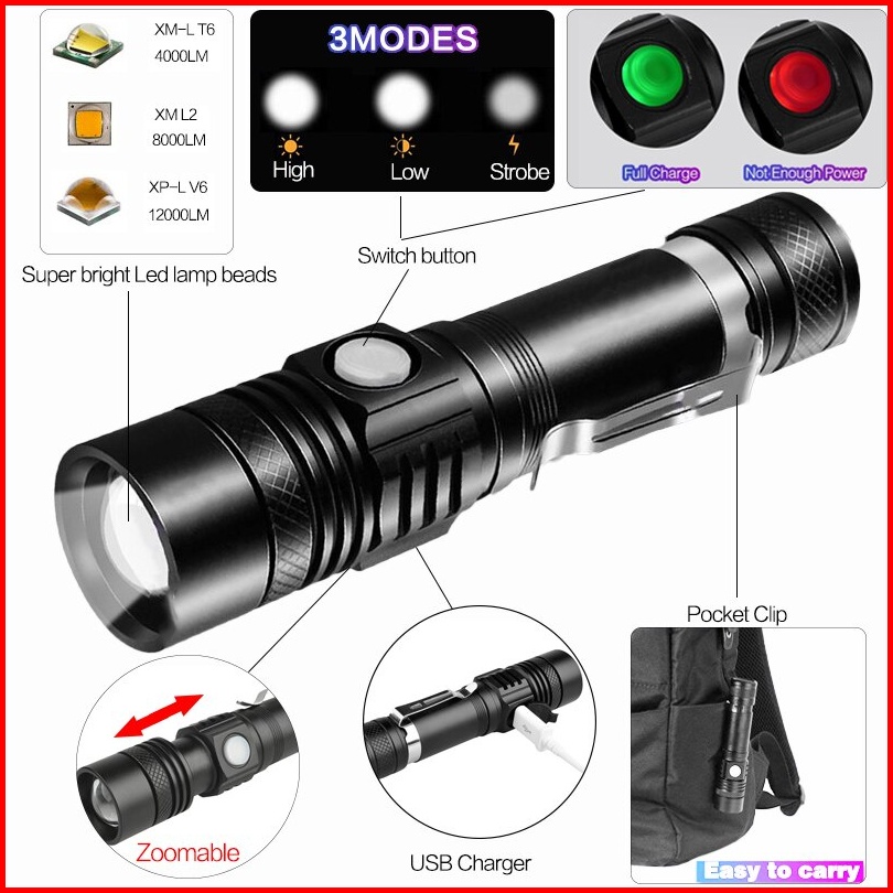 Senter Led Usb Rechargeable Xml-t6 6200 Lumens 10w - P15