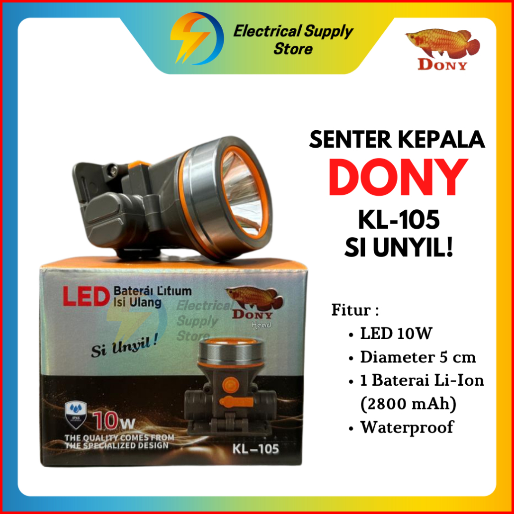 Senter Kepala Dony Kl-105 10w Si Unyil Terang Mode S.o.s Putih Dan Kuning Waterproof Kecil