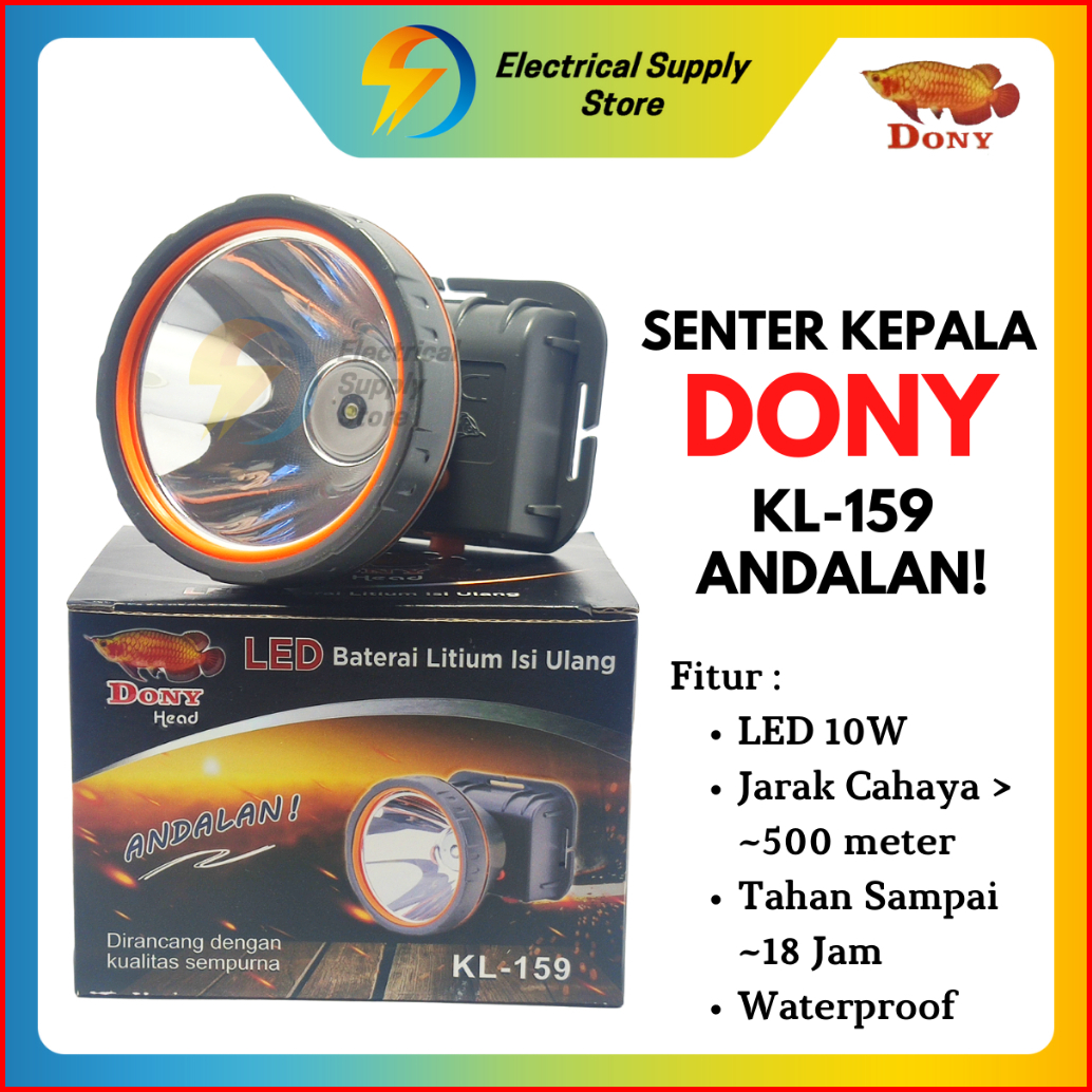 Senter Kepala Dony Kl-159 Andalan Led 10 W Cahaya Terang Cahaya Putih Dan Kuning Waterproof