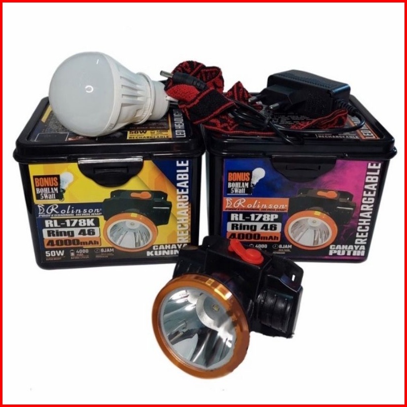Senter Kepala Super Terang Rolinson Rl-178p K Plus Bohlam Rolinson Professional Headlamp