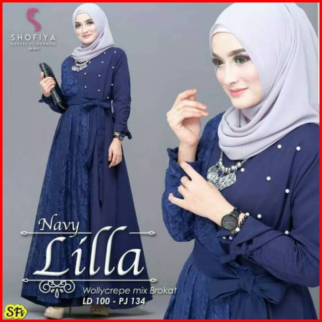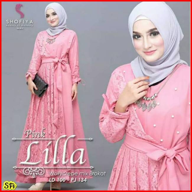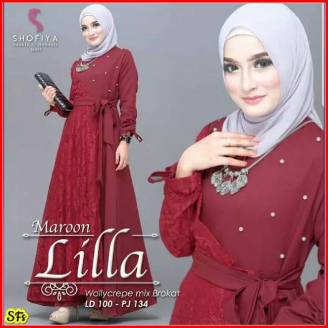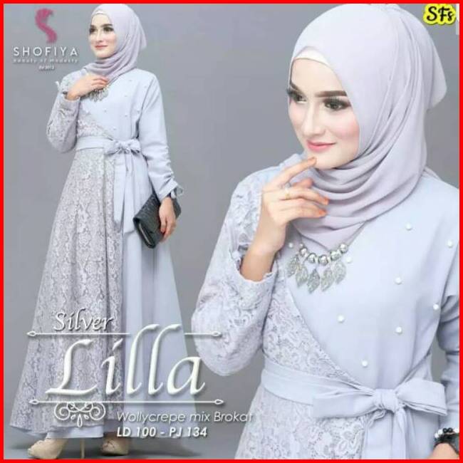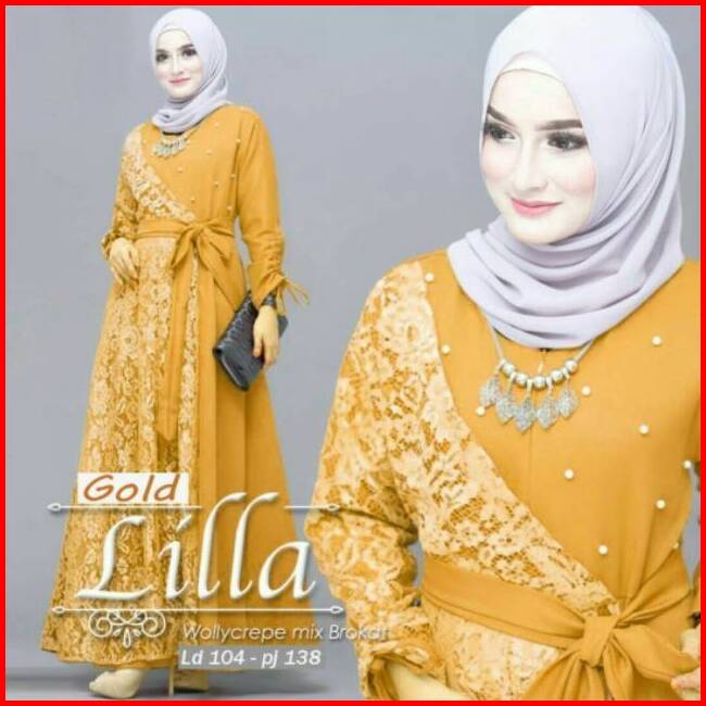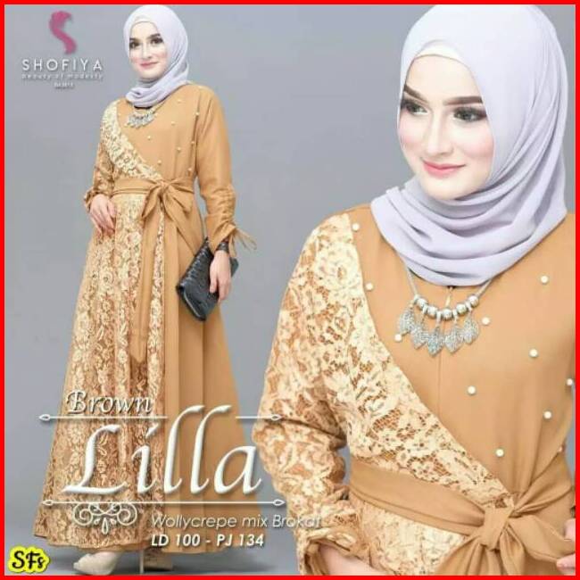 Lilla Dress Maxi Brukat Gamis Wanita Kondangan M L Xl Xxl Xxxl