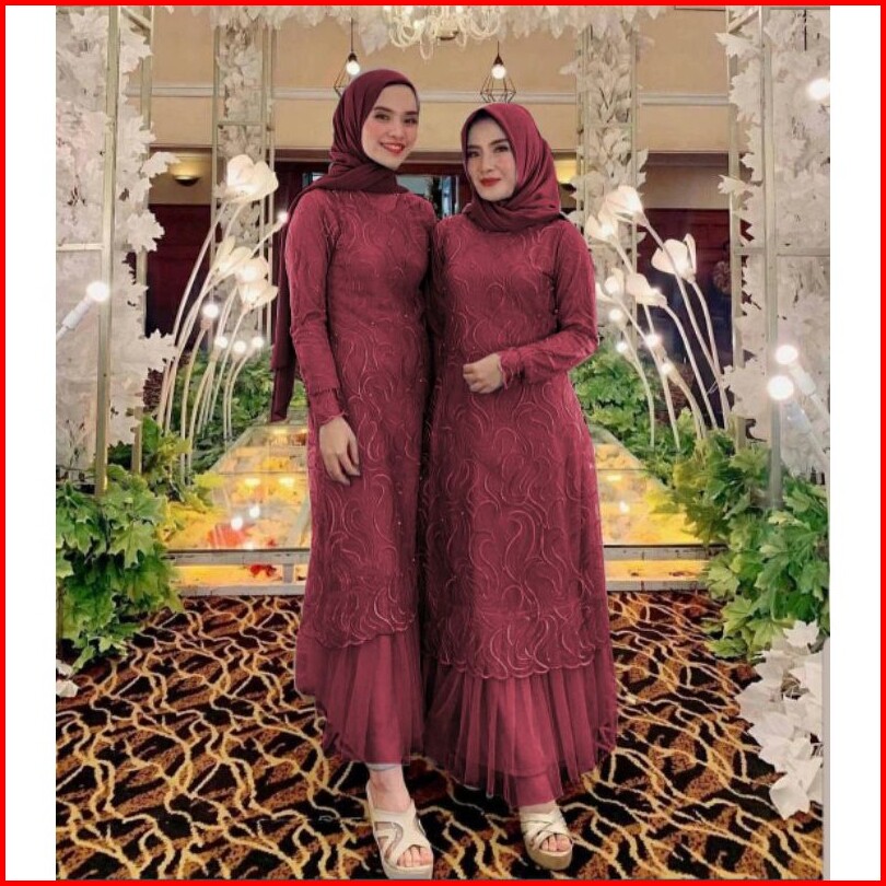 Geraldine Gamis Pesta Baju Muslim Wanita Jumbo Gamis Brukat Tile Gamis Kondangan Remaja Dewasa Fashion Muslim Premium