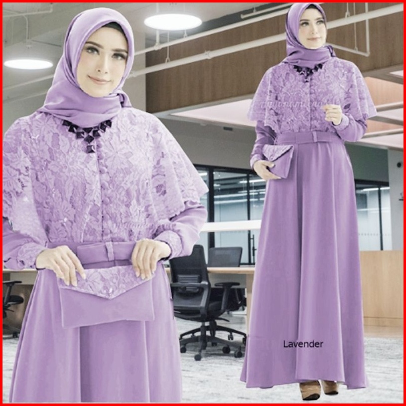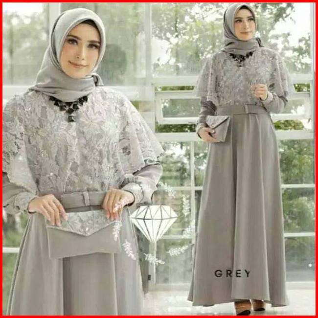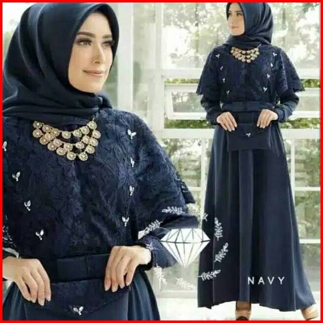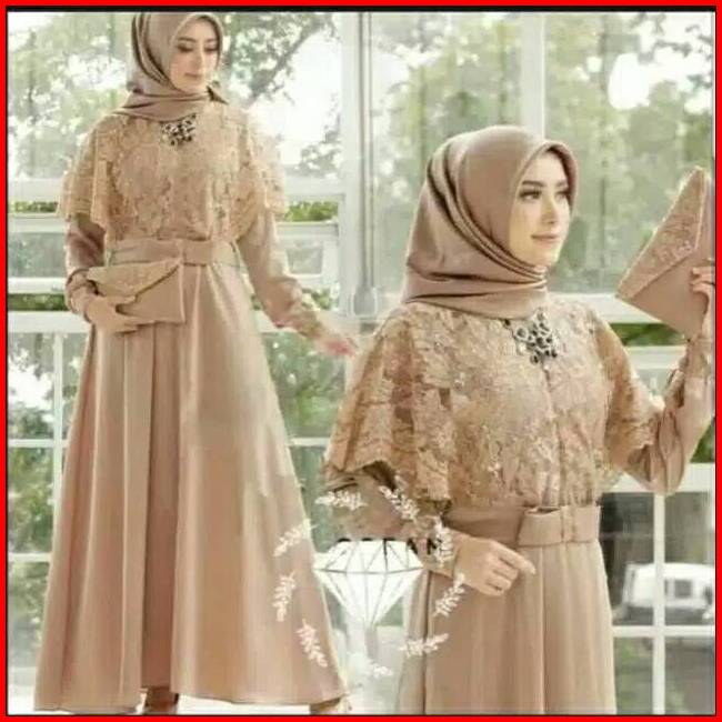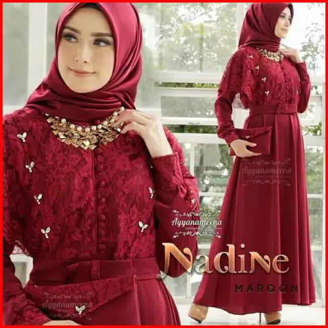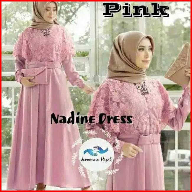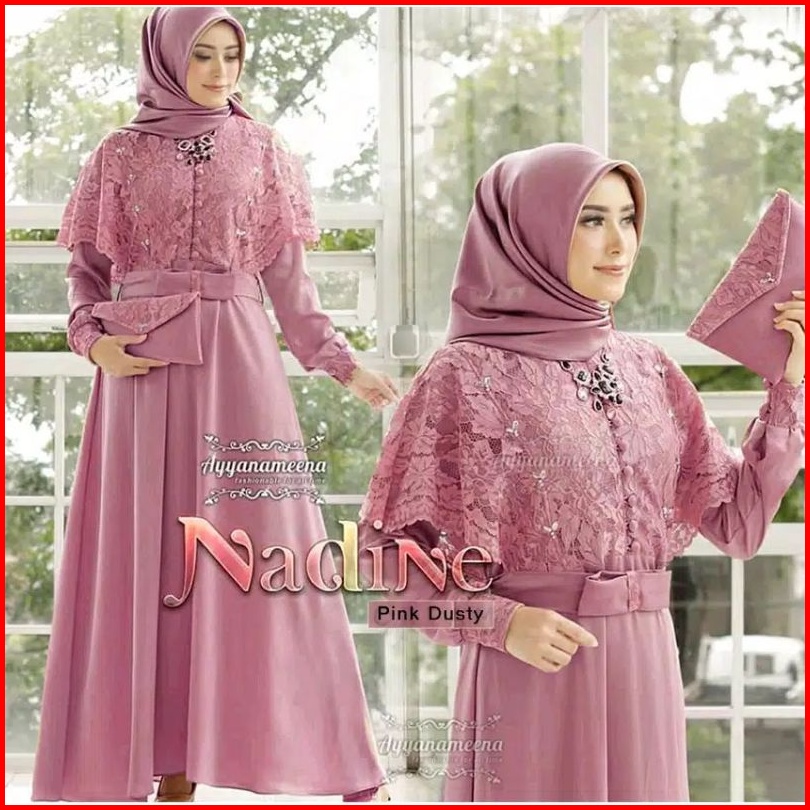 Nadine-gamis Brukat Wanita Busui Wudhu Friendly Elegan Dress Muslim Pesta Kondangan Size S - Xxl