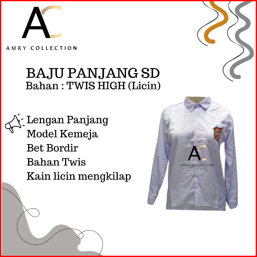 Kemeja Sekolah Sd Baju Putih Lengan Panjang Seragam Sekolah Sd Mi By.amrycollection Twist