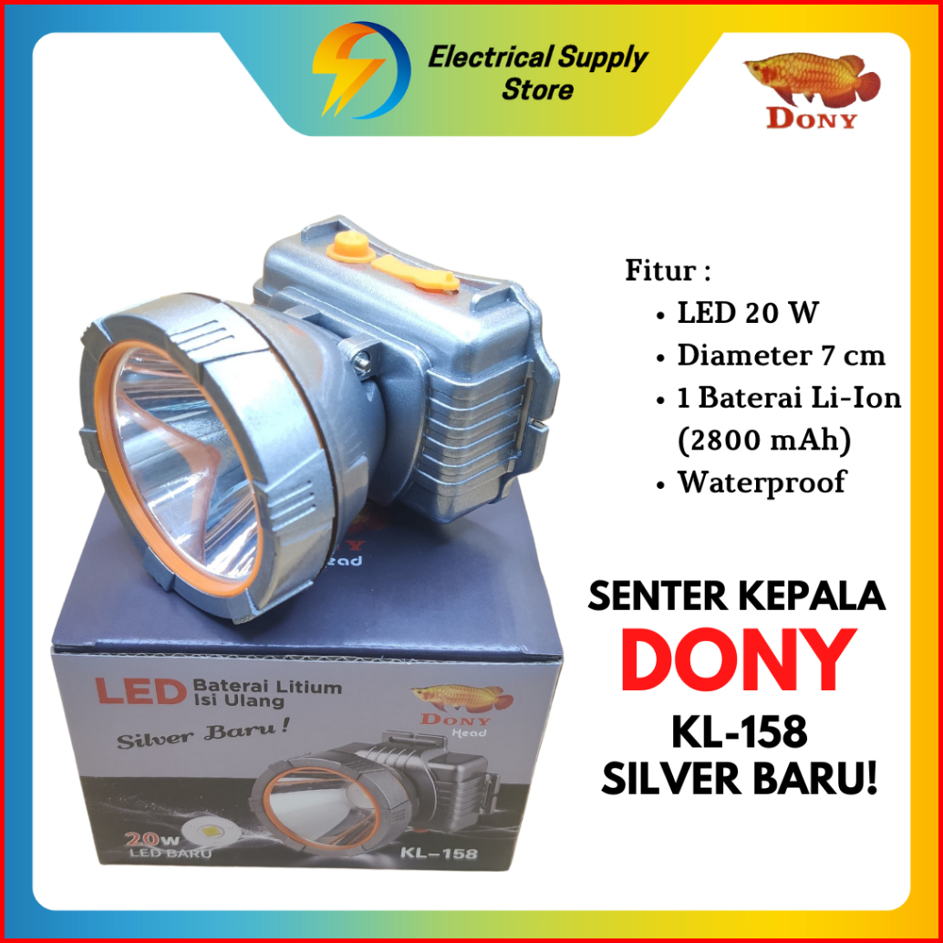 Senter Kepala Dony Kl-158 Led 20 W Super Terang Cahaya Putih Kuning Bisa Dicas Anti Air