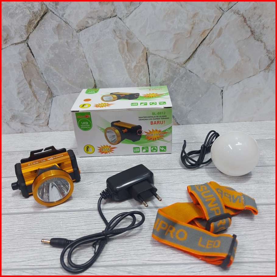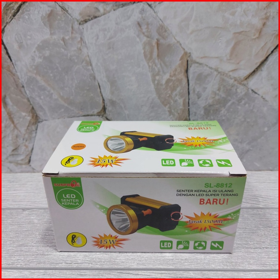 Senter Kepala Sunpro Led Cahaya Kuning Dan Putih Sunpro Sl-8812 Senter Jidat
