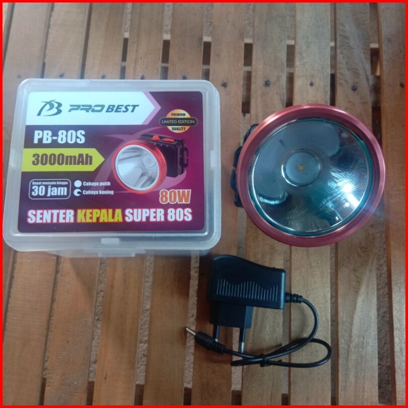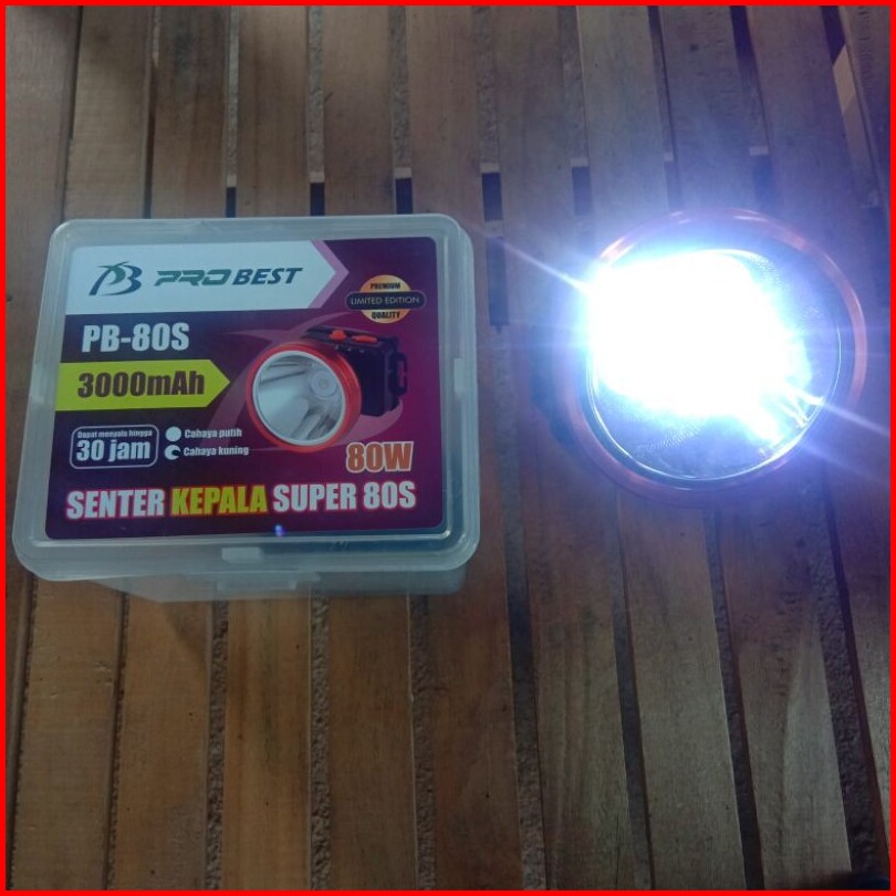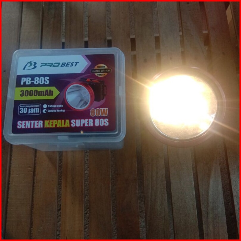 Senter Kepala 80 Watt Probest Pb-80s 3000mah Cahaya Putih Kuning