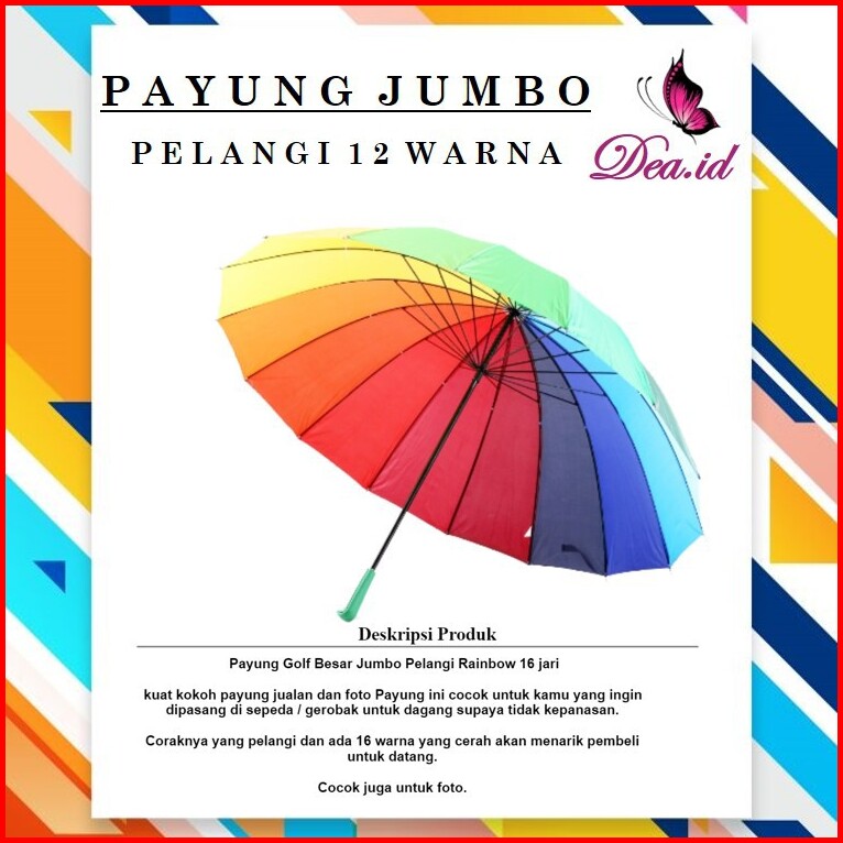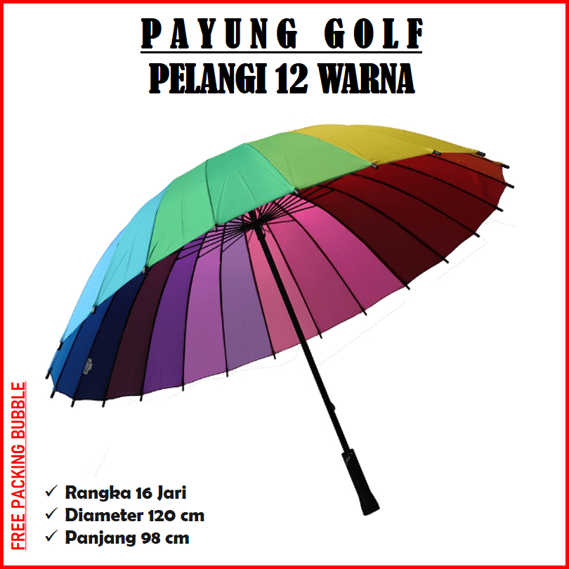 Payung Golf Jumbo Pelangi 12 Warna - Stylish Kokoh Dan Awet