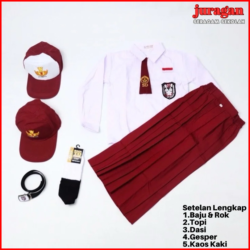 Setelan Super Lengkap Seragam Sekolah Sd Baju Panjang Rok Panjang Perempuan Cewek