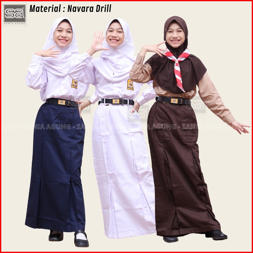 Rok Smp Mts Rok Seragam Sekolah Panjang Belah 2 Biru Osis Putih Cokelat Pramuka Navara Drill Grade 1 - Sania Agung