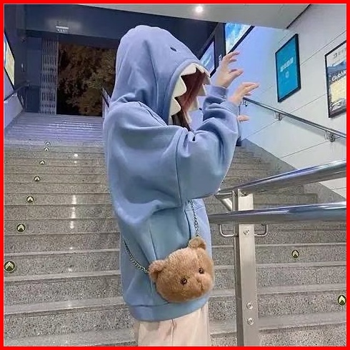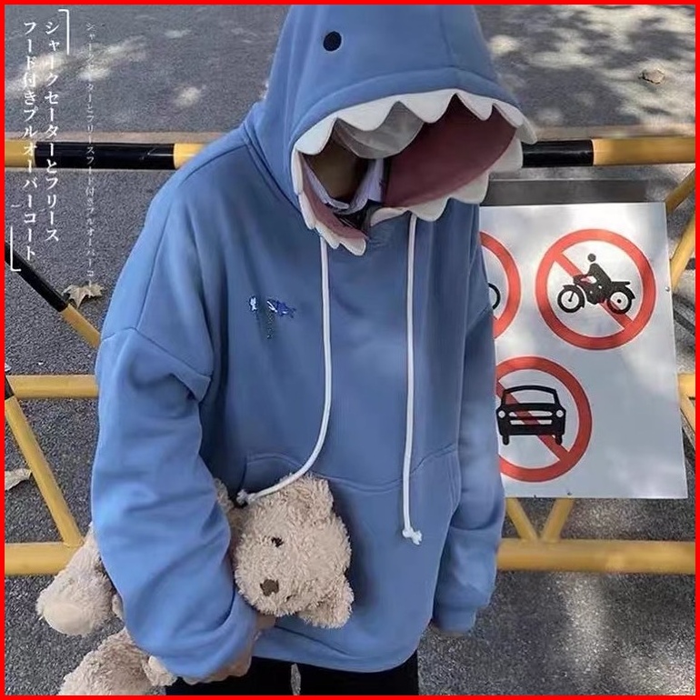 Funny Shark Bordir Sweater Hoodie Premium Sweater Wanita Oversize Sweatshirt Unisex