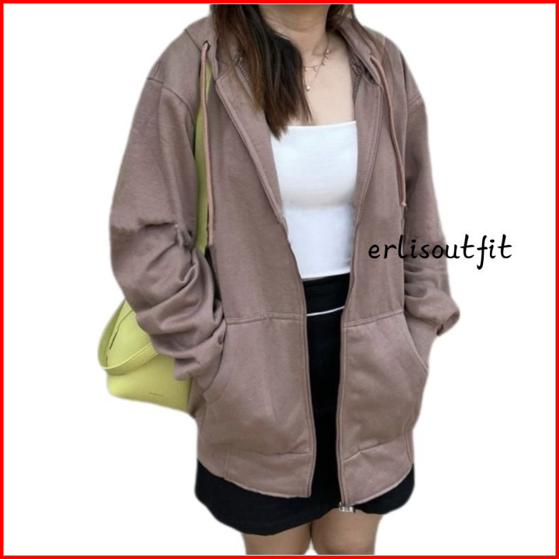 Jaket Hoodie Oversize Polos Resleting Zipper Unisex Wanita Pria Distro Korea Carla