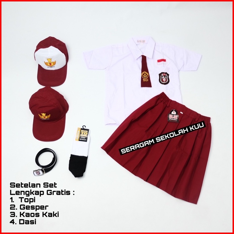 Setelan Super Lengkap Seragam Sekolah Sd Baju Pendek Rok Pendek Perempuan Cewek