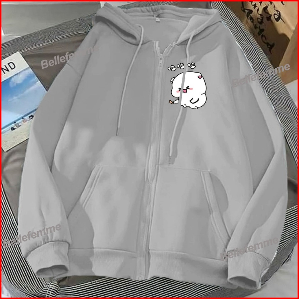 Hoodie Zipper Wanita Cute Cat Premium Aesthetic Jaket Wanita Terbaru Couple Bestie Viral Murah L Xl Xxl Bahan Fleece Swe