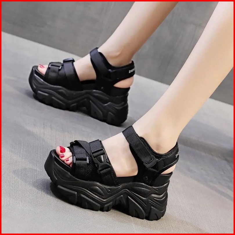 Lurad Sandal Wedges Cewek Strip Silang Sendal Wanita Perempuan Sol Tinggi Sangat Nyaman Dipakai Korea Style Kualitas Bag
