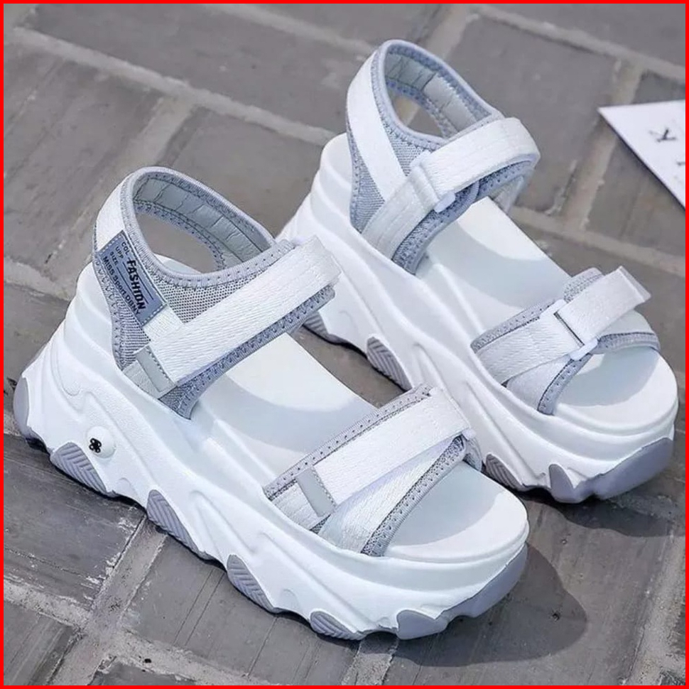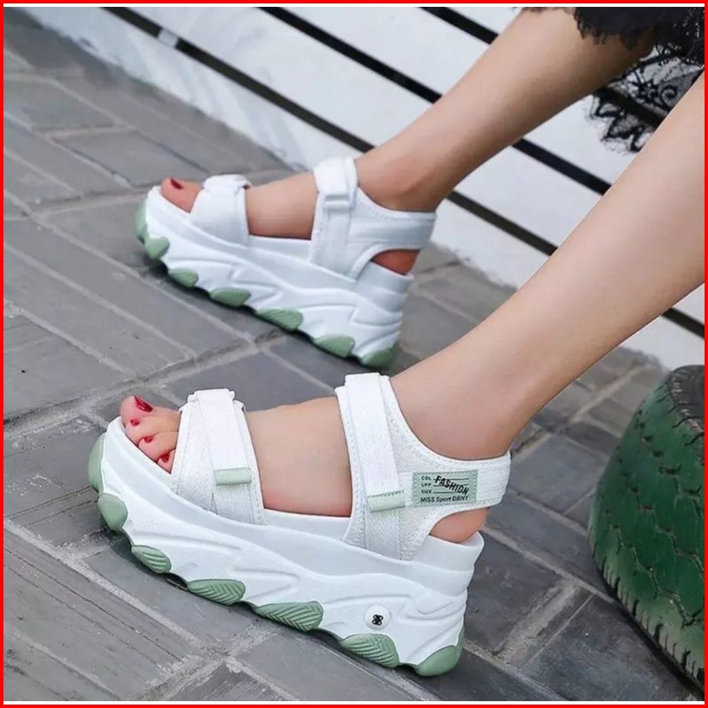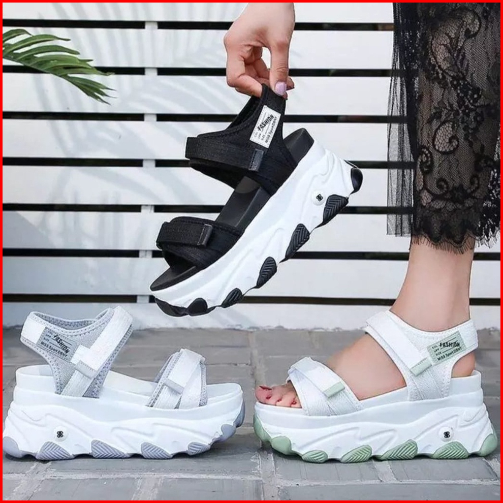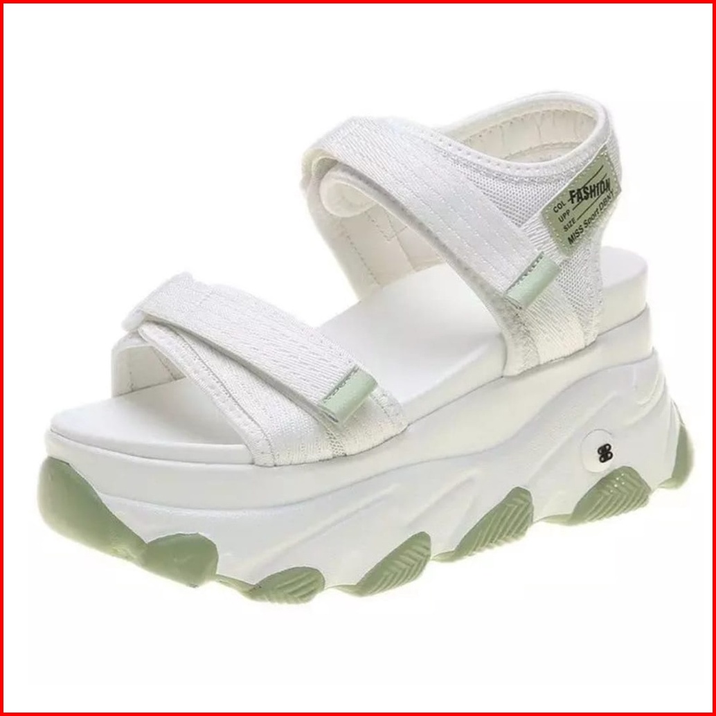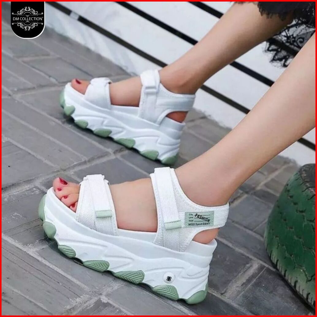 Dm-shopp Sandal Wedges Wanita Hak Tebal Casual Double Velcro Kombinasi Webing Best Quality Hd 90