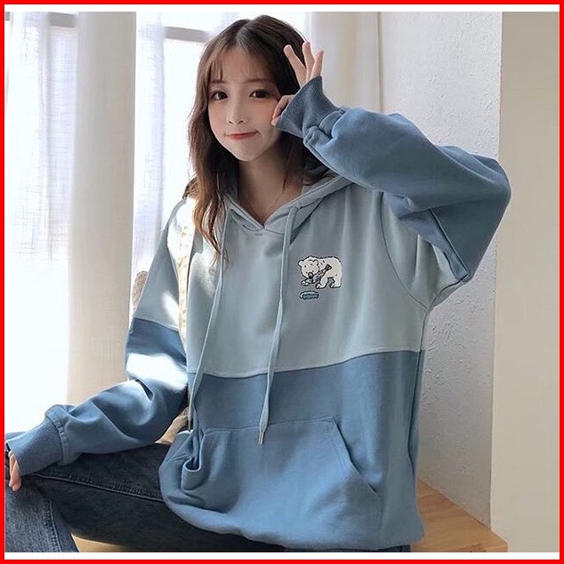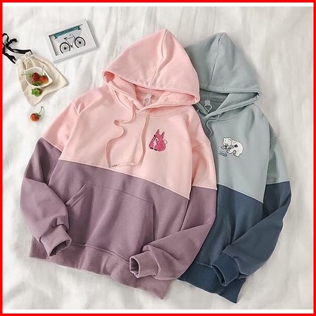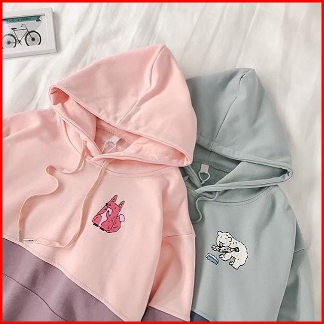 Sweater Hoodie Cartoon Combinasi Hoodie Oversize Sweater Hodie Wanita Bahan Fleece Korean Style