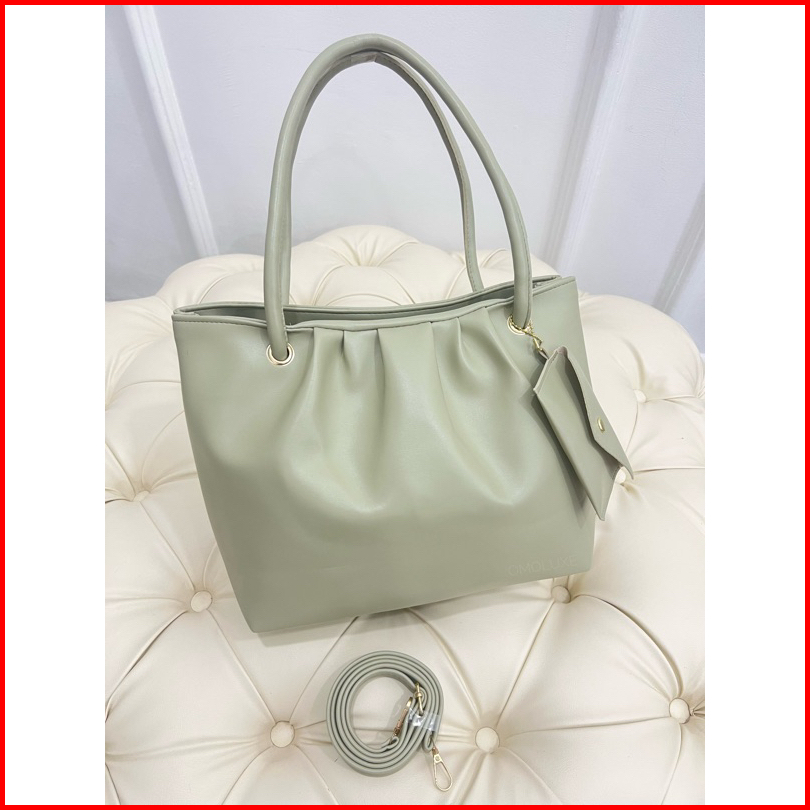 Omoluxe Original Tote Omo Grace Korean Bag Set Pouch Kulit Tote Wanita