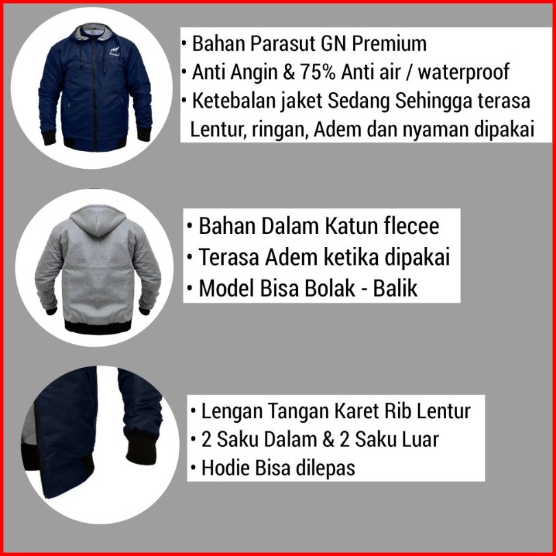 Jaket Motor Parasut Hodie Bolak Balik Premium Original Pria Cowok Hoodie Hoddie