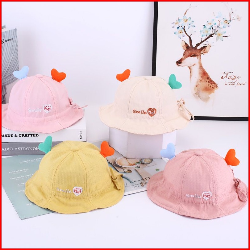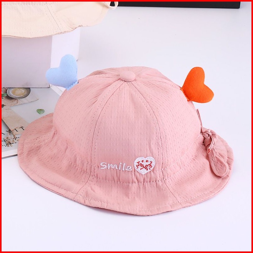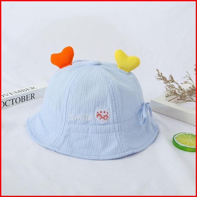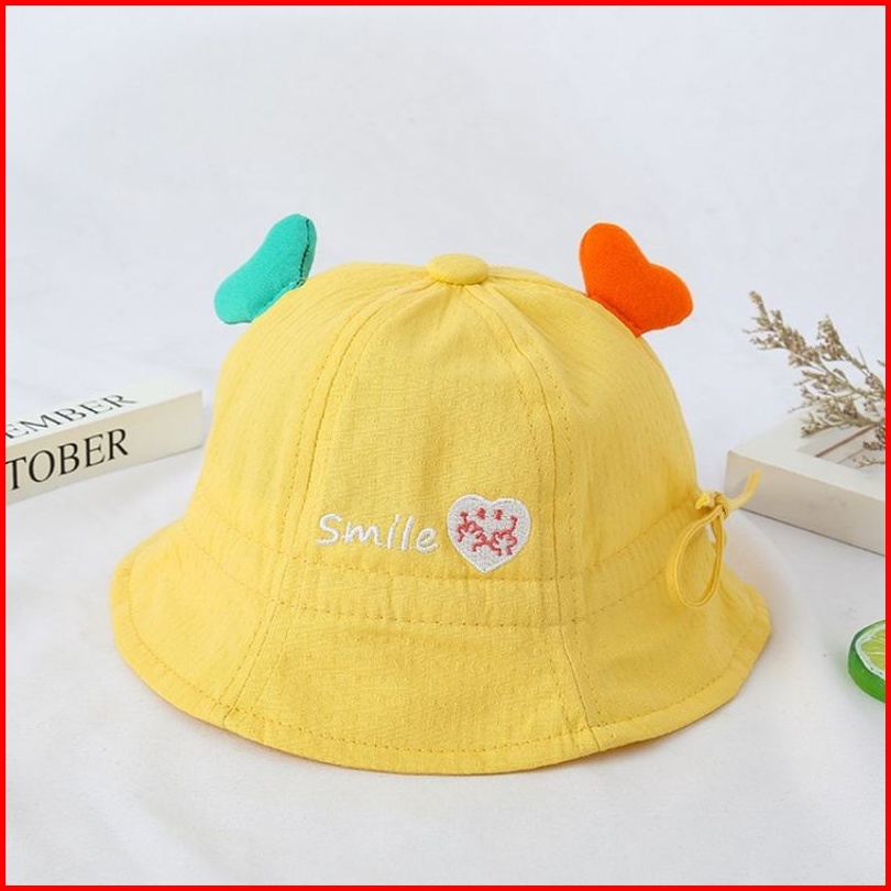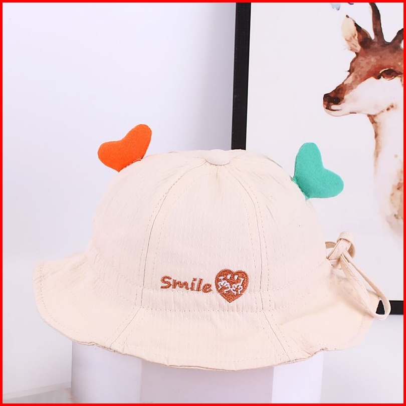 Topi Bayi Bucket Smile Love Baby Hat Bucket Pantai