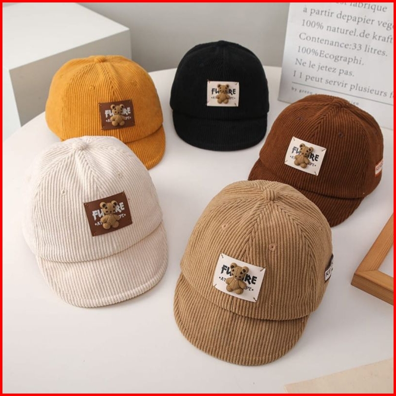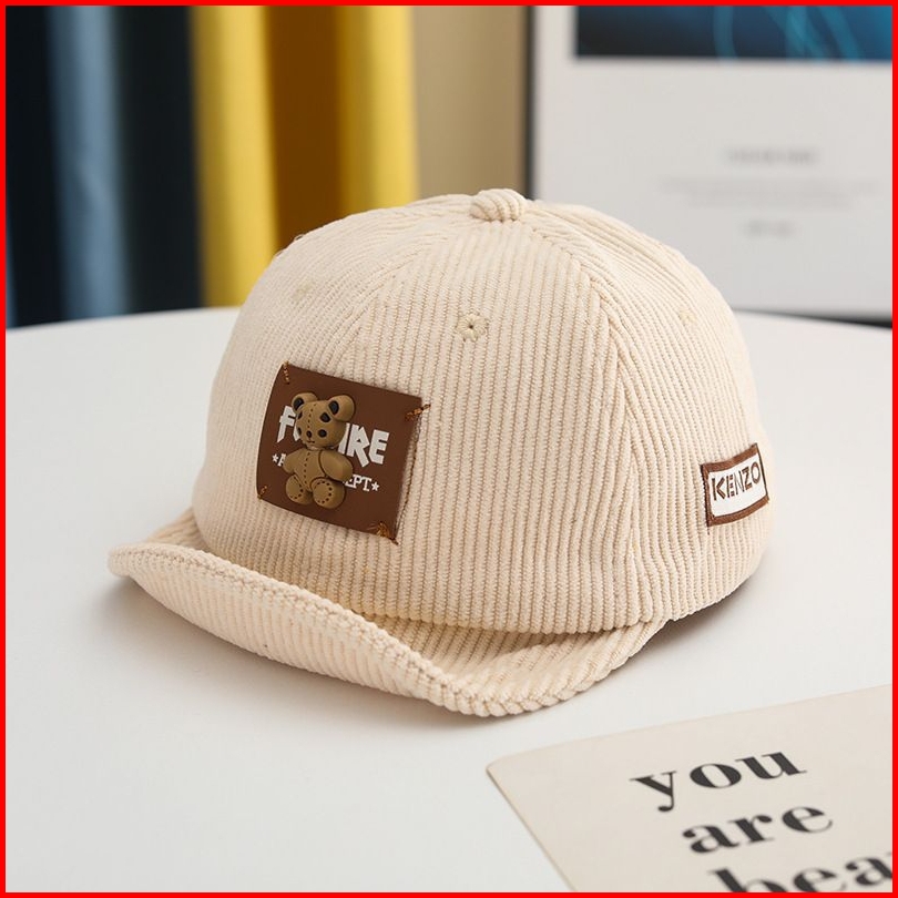 Topi Pet Bayi Bahan Corduroy Motif Bear Kenz0