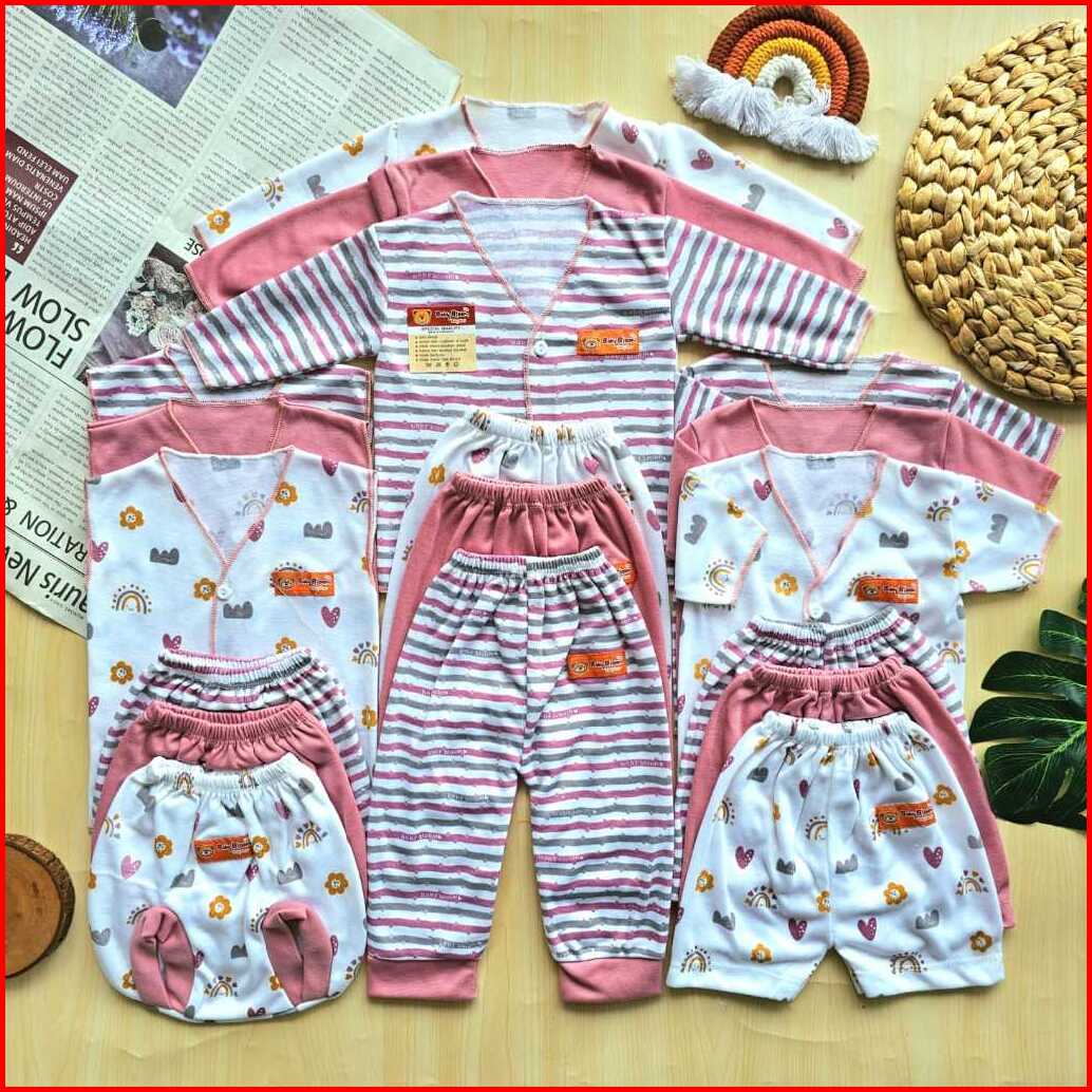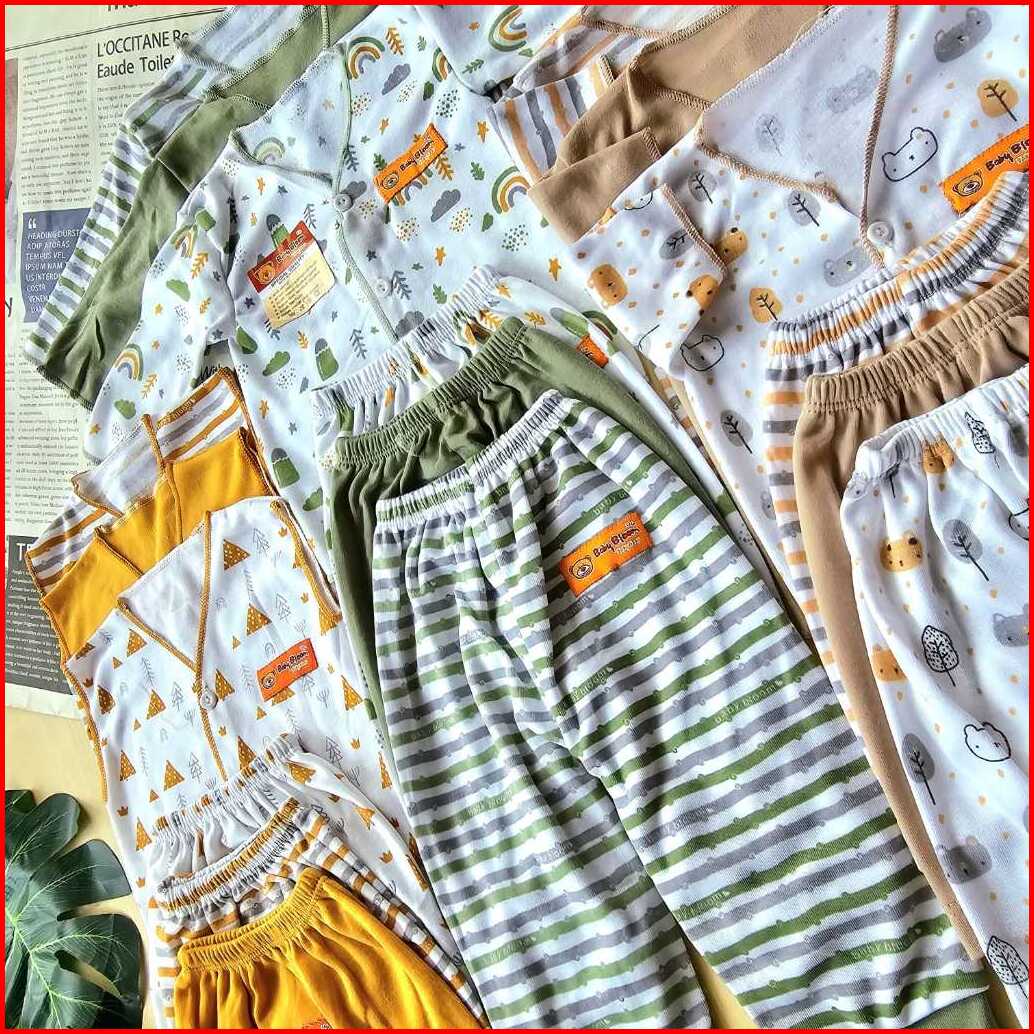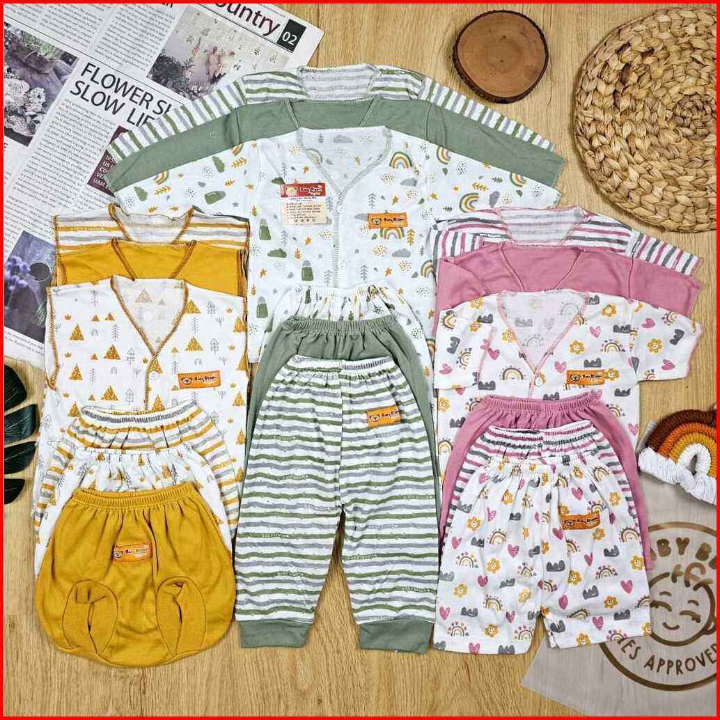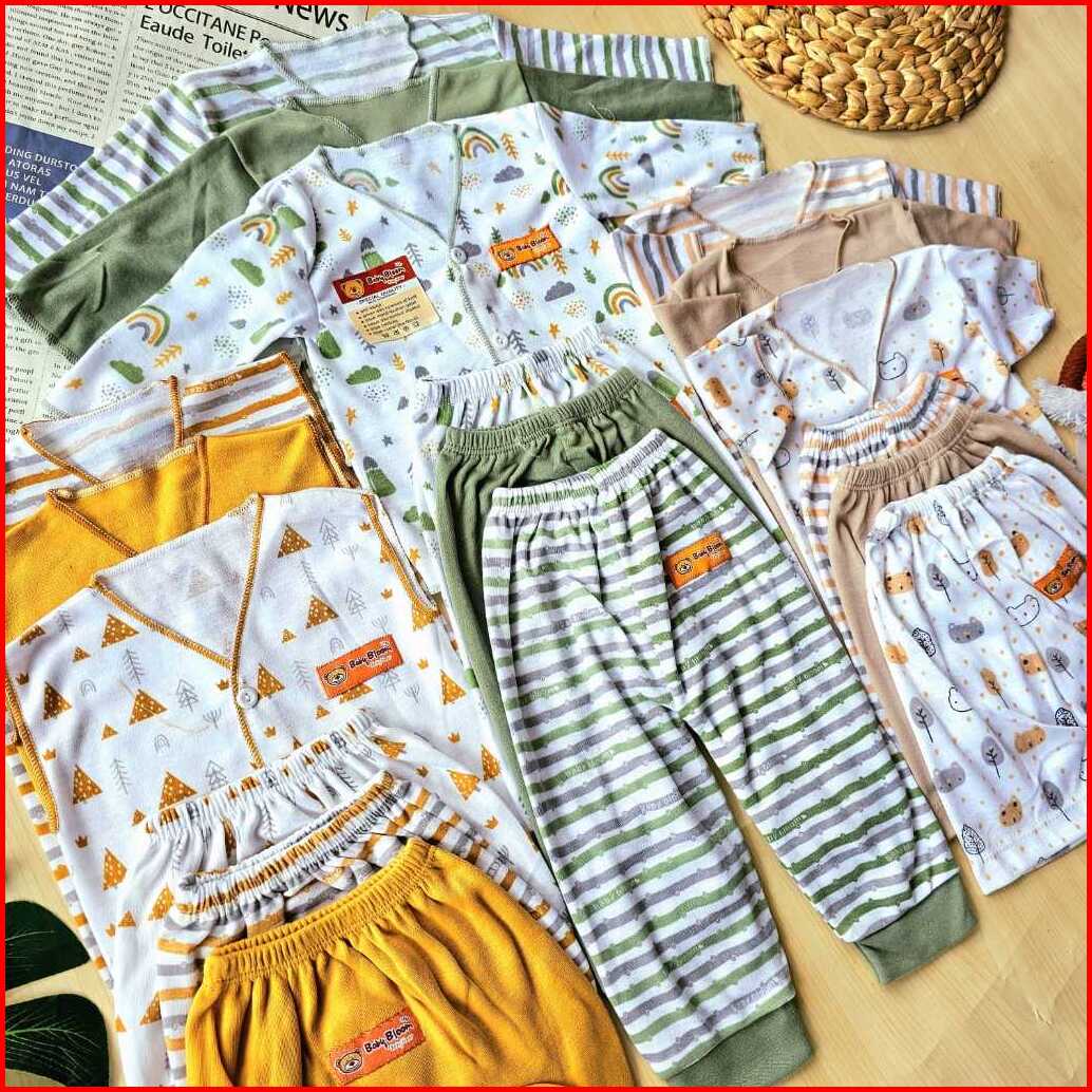Free Ziper Bag Baby Bloom Serian 3 Warna - 18 Pcs Paket Baju Bayi Celana Bayi Serian Green Sage Mocha Mustrad Setelan Ba