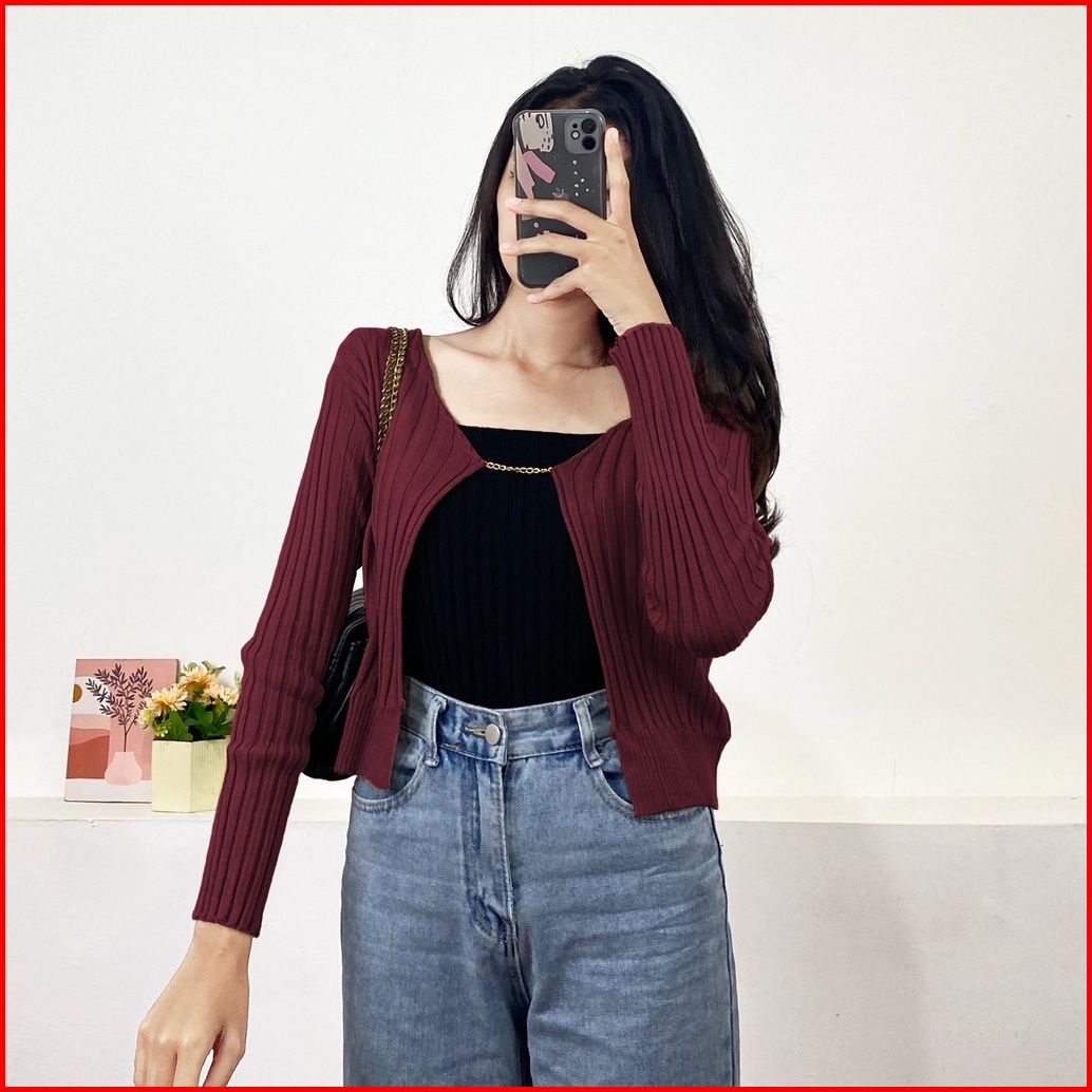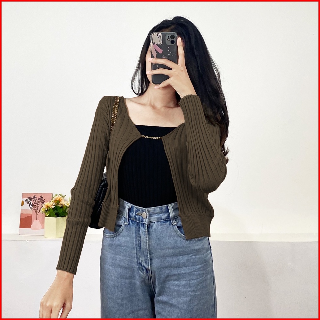 Diana Cardigan Knit Outer Crop Wanita Lea Store