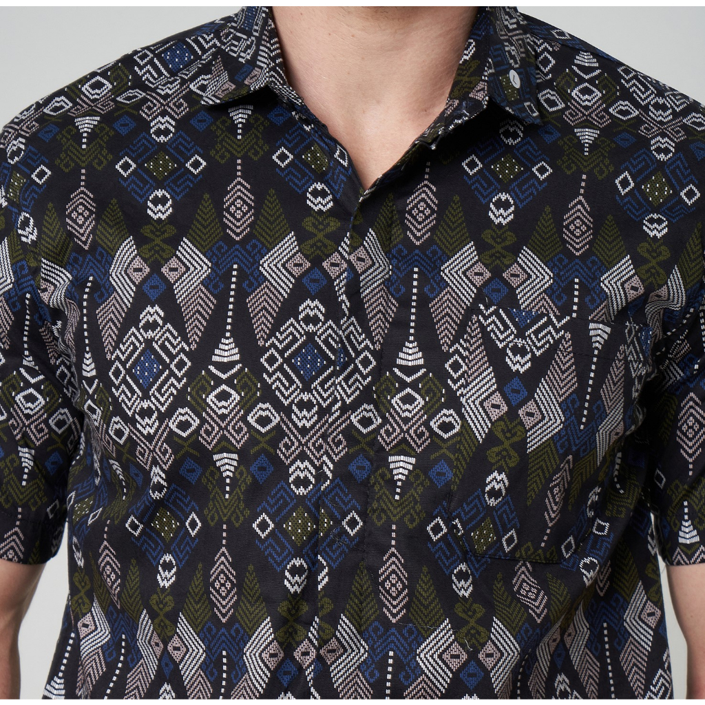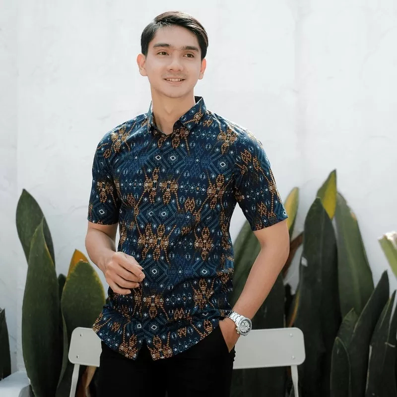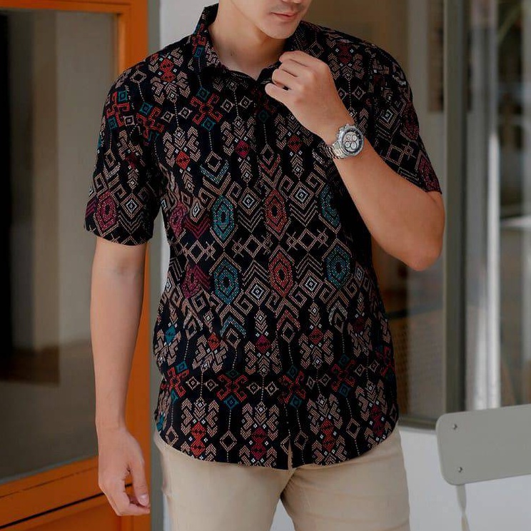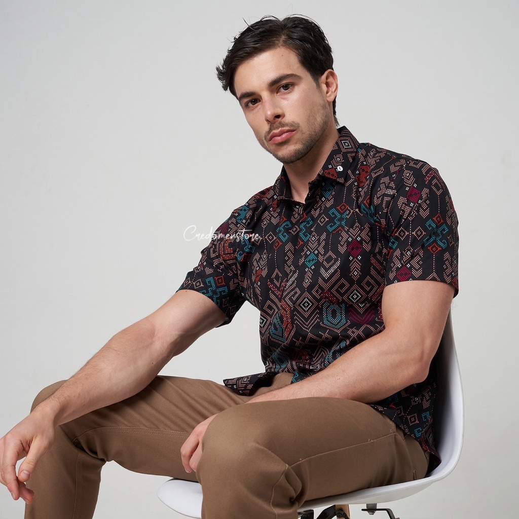 KEMEJA BATIK PRIA LENGAN PENDEK COWOK PREMIUM SLIMFIT MODERN SONGKET HITAM