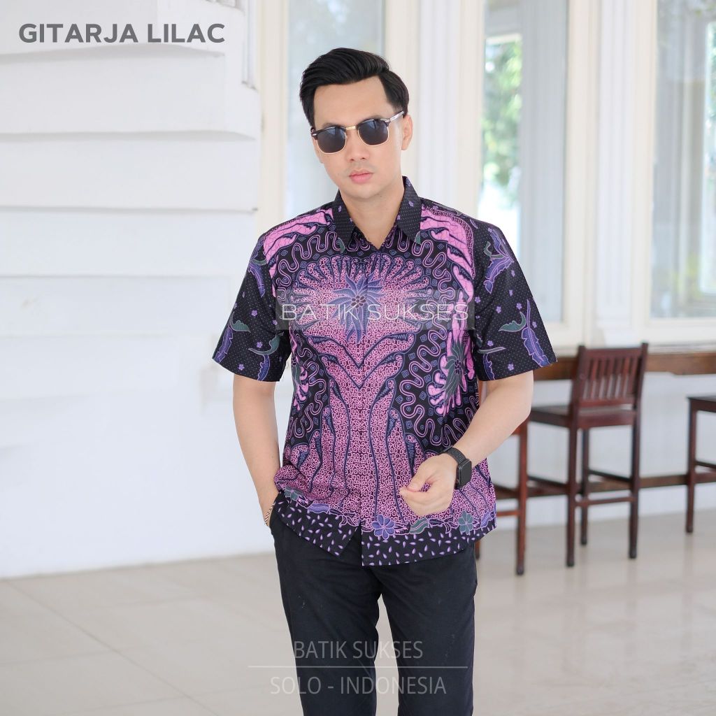 ATASAN KEMEJA BATIK PRIA LAPIS FURING PREMIUM LENGAN PANJANG BATIK SOLO ASLI WARNA UNGU PINK LILAC HITAM SUKET SEGORO
