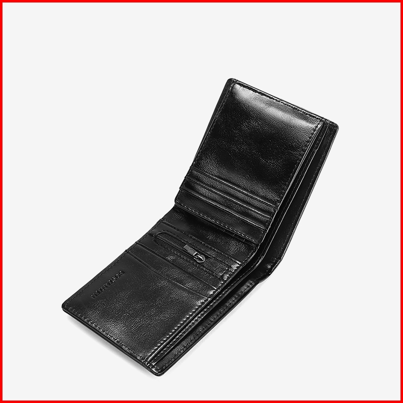 Bostanten Dompet Lipat Pria Koin Ritleting Bahan Kulit Pu Hitam Kopi Coklat