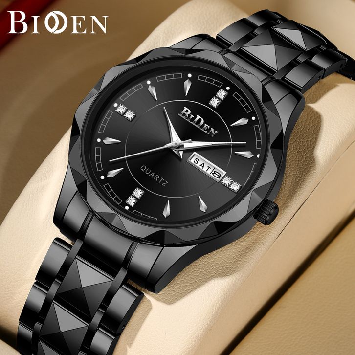 BIDEN Jam Tangan Pria Anti Air Original Kalender Kuarsa Kemewahan Mode Tali Stainless Steel Jam Tangan Cowok YNS001M