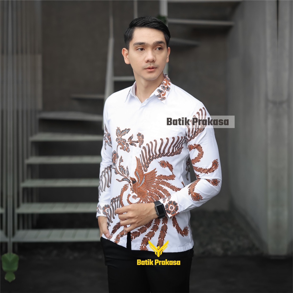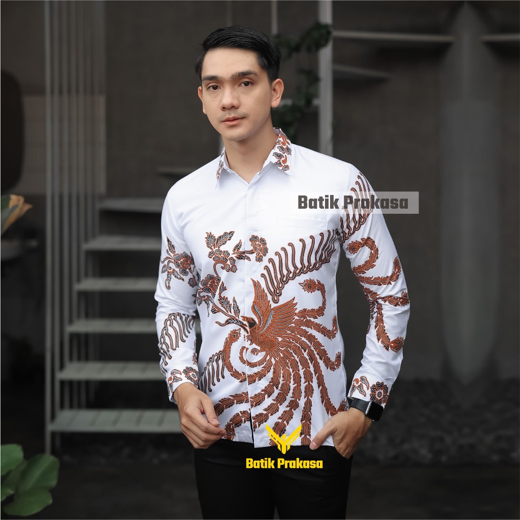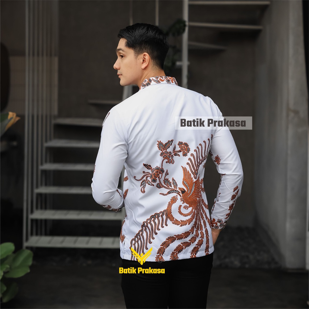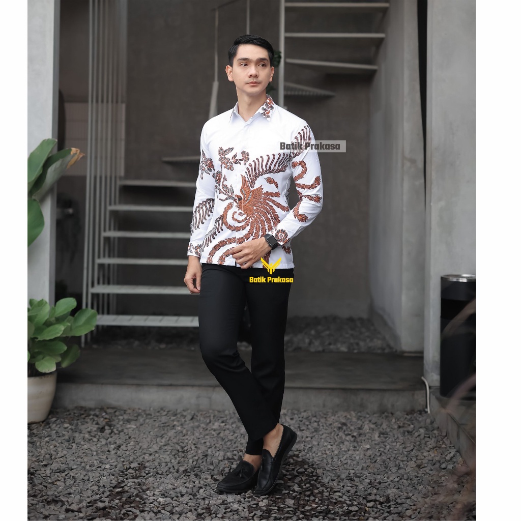 KEMEJA BATIK PRAKASA MOTIF MANDAKA PUTIH SLIMFIT LENGAN PANJANG BATIK SOLO