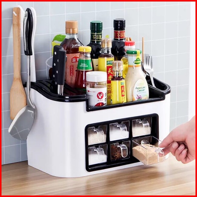 Mega 1688 Rak Bumbu Dapur Kotak Bumbu Tempat Pisau Sendok Rak Alat Memasak 839