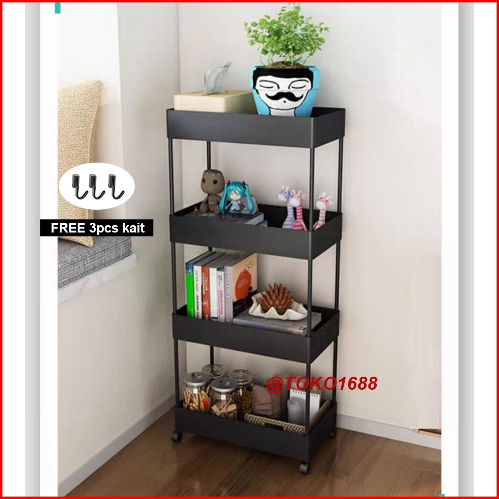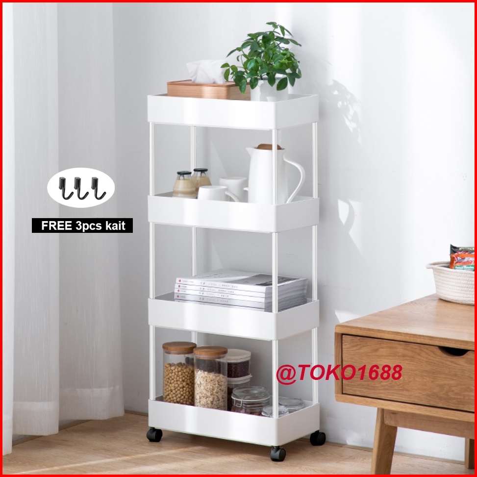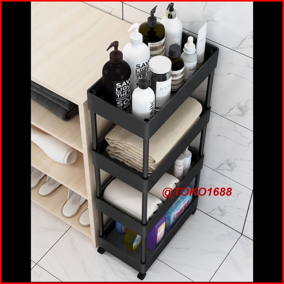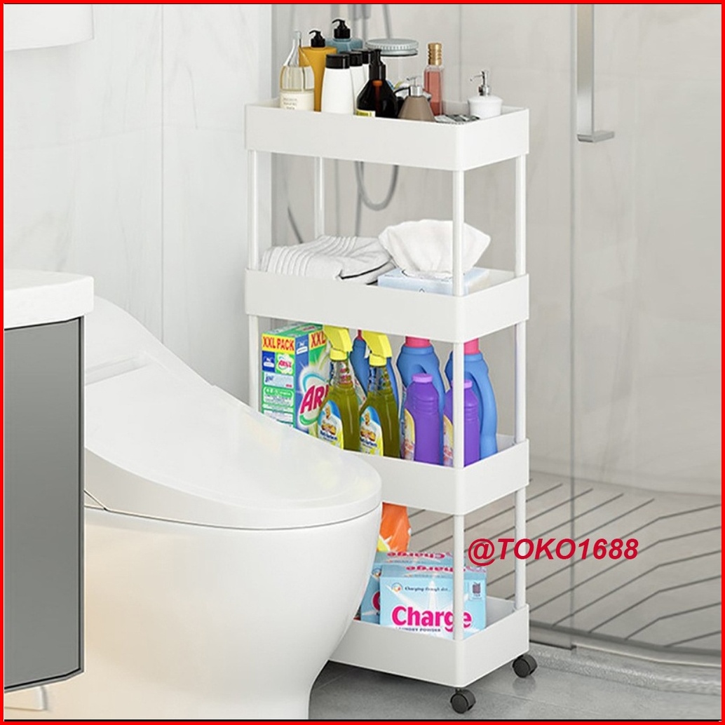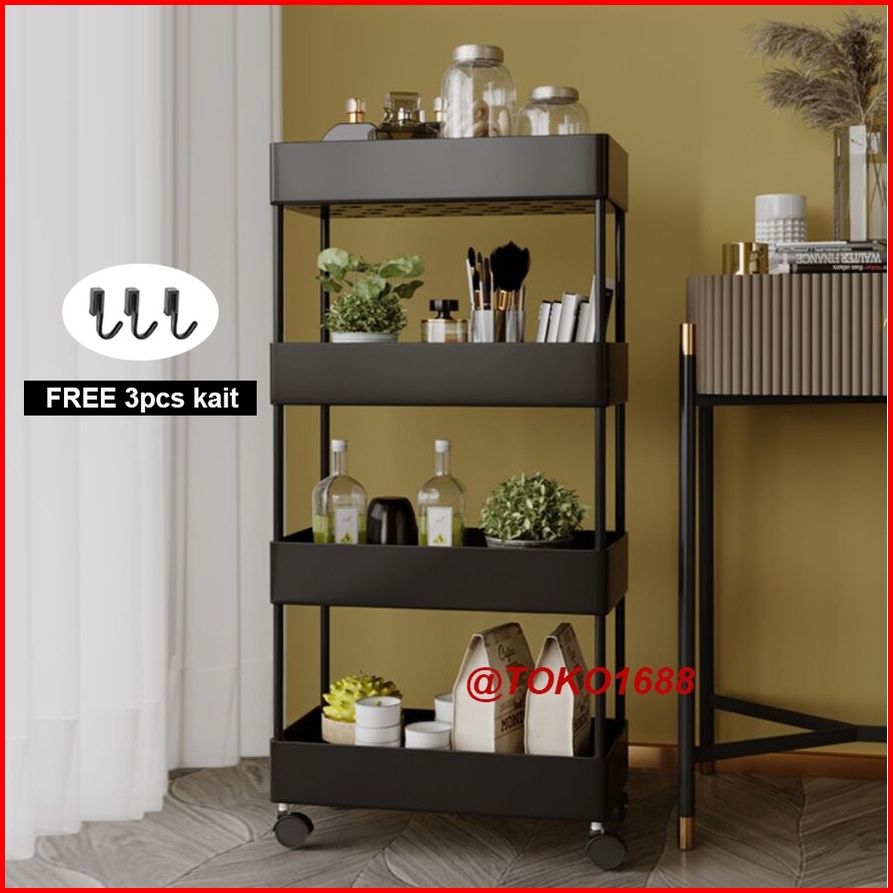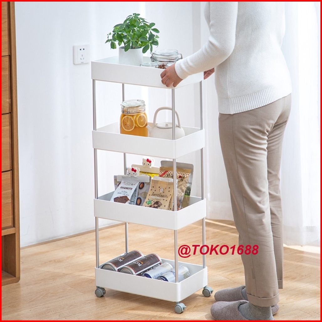 Rak Dapur Square Rak Troli Rak Kamar Mandi Rak Susun Serbaguna 4 Tingkat Dengan Roda